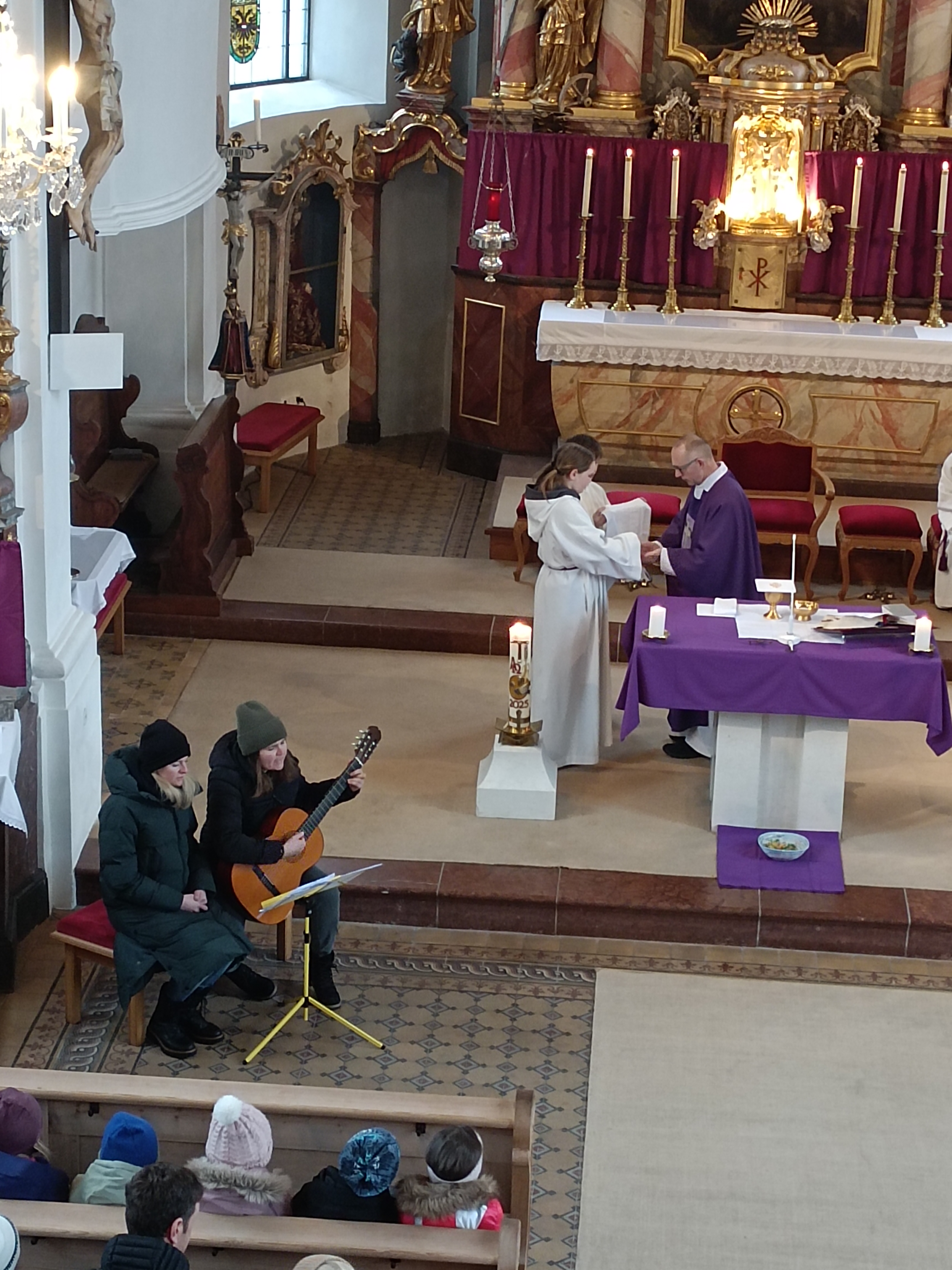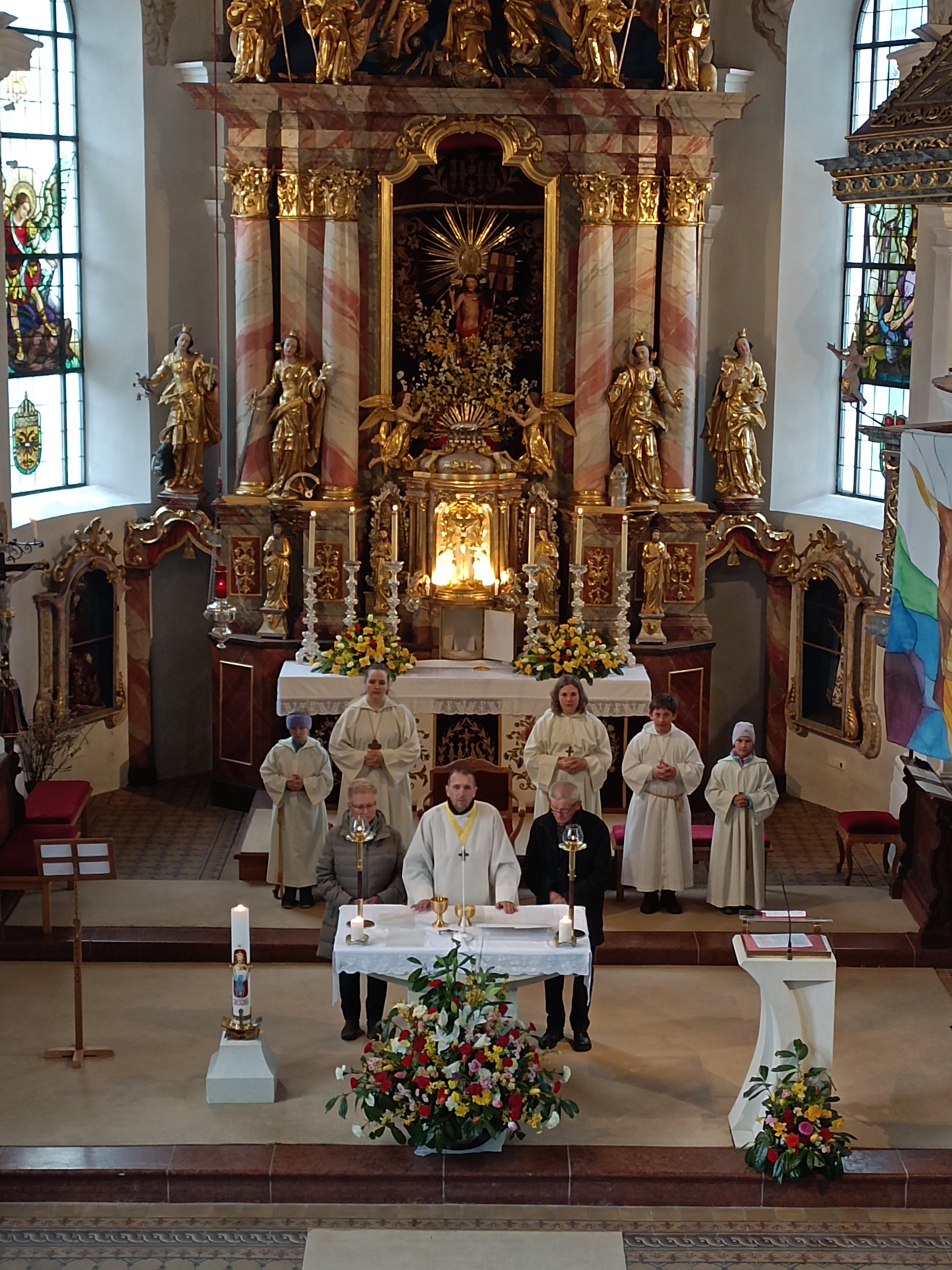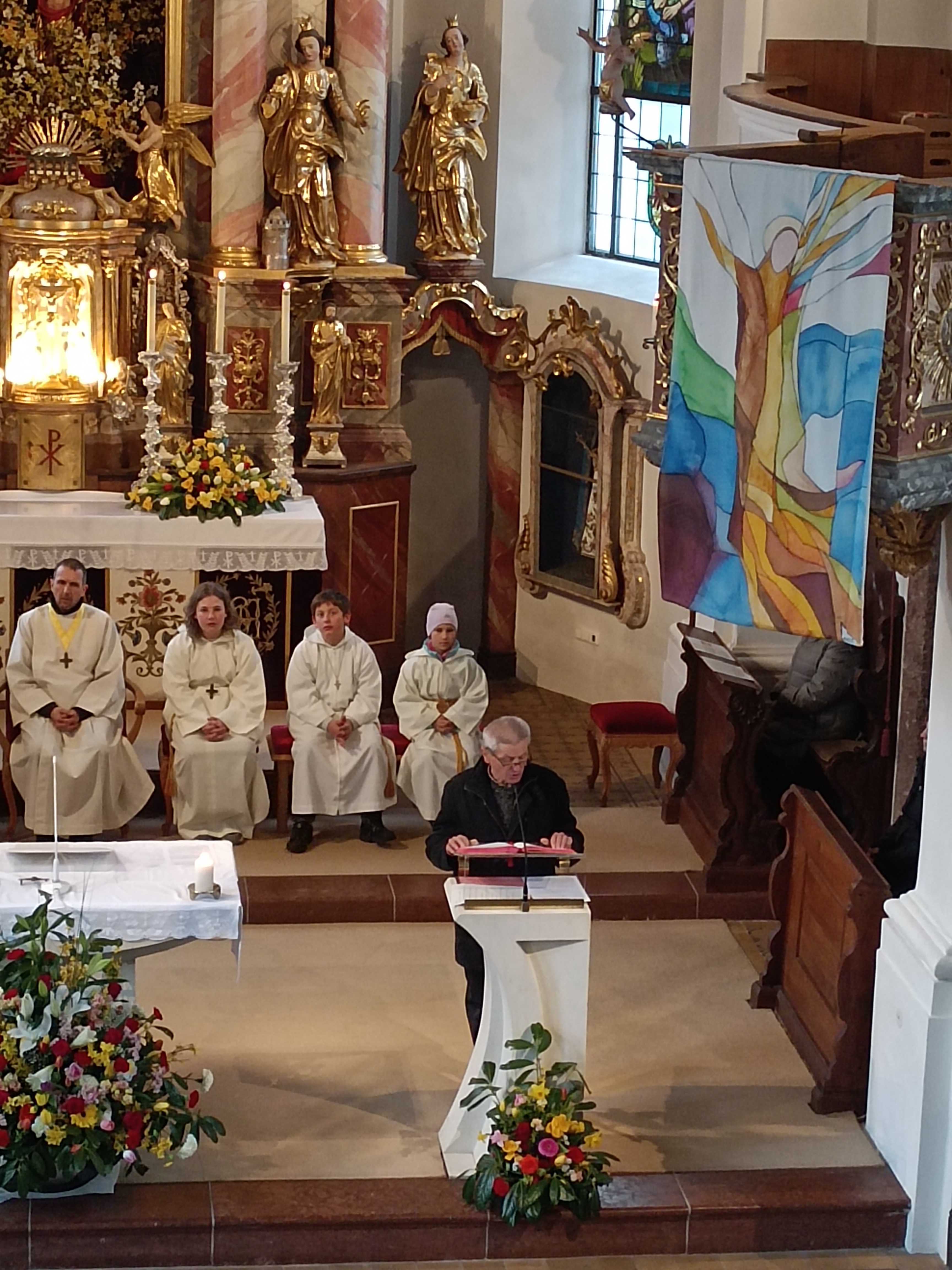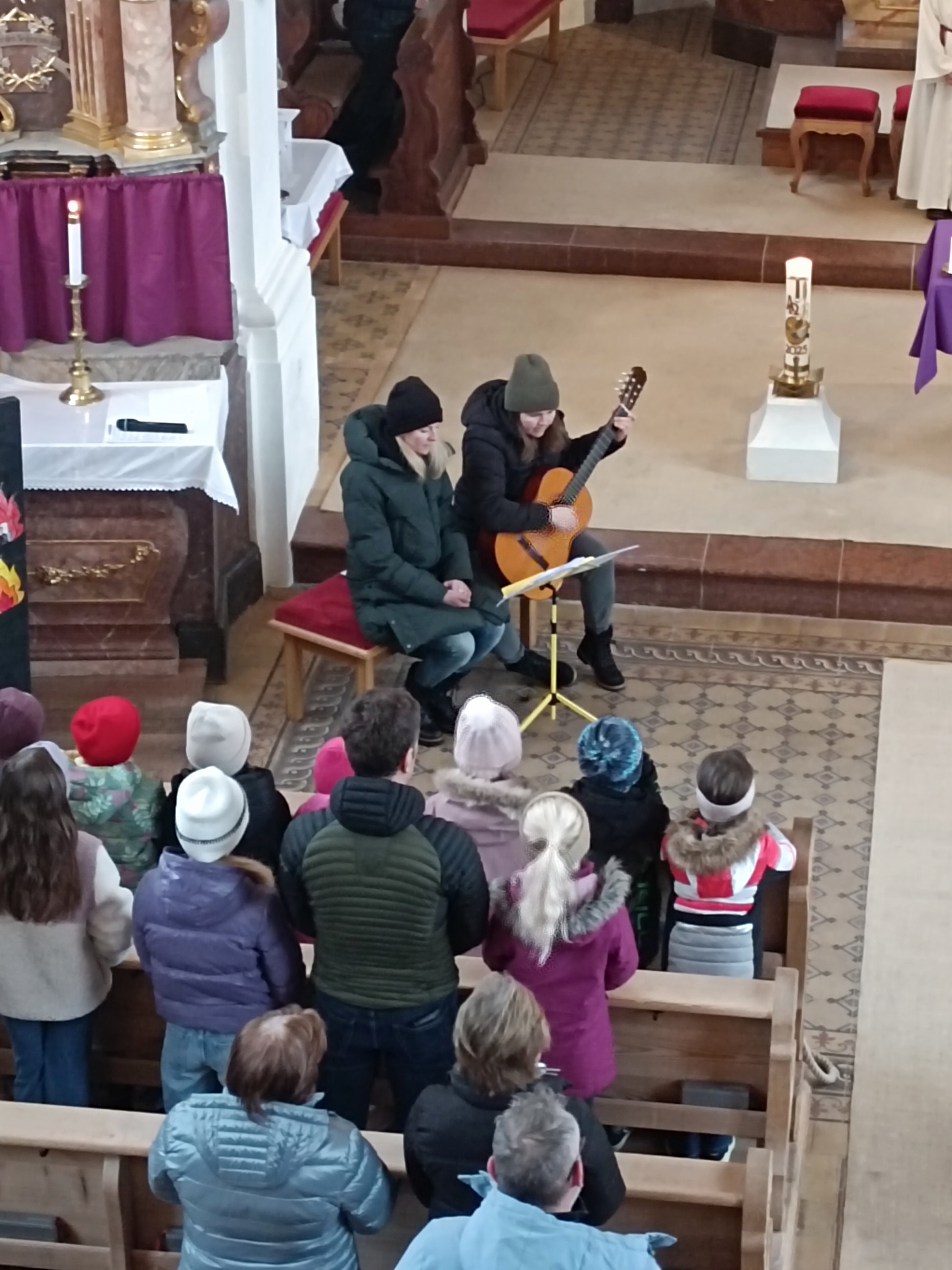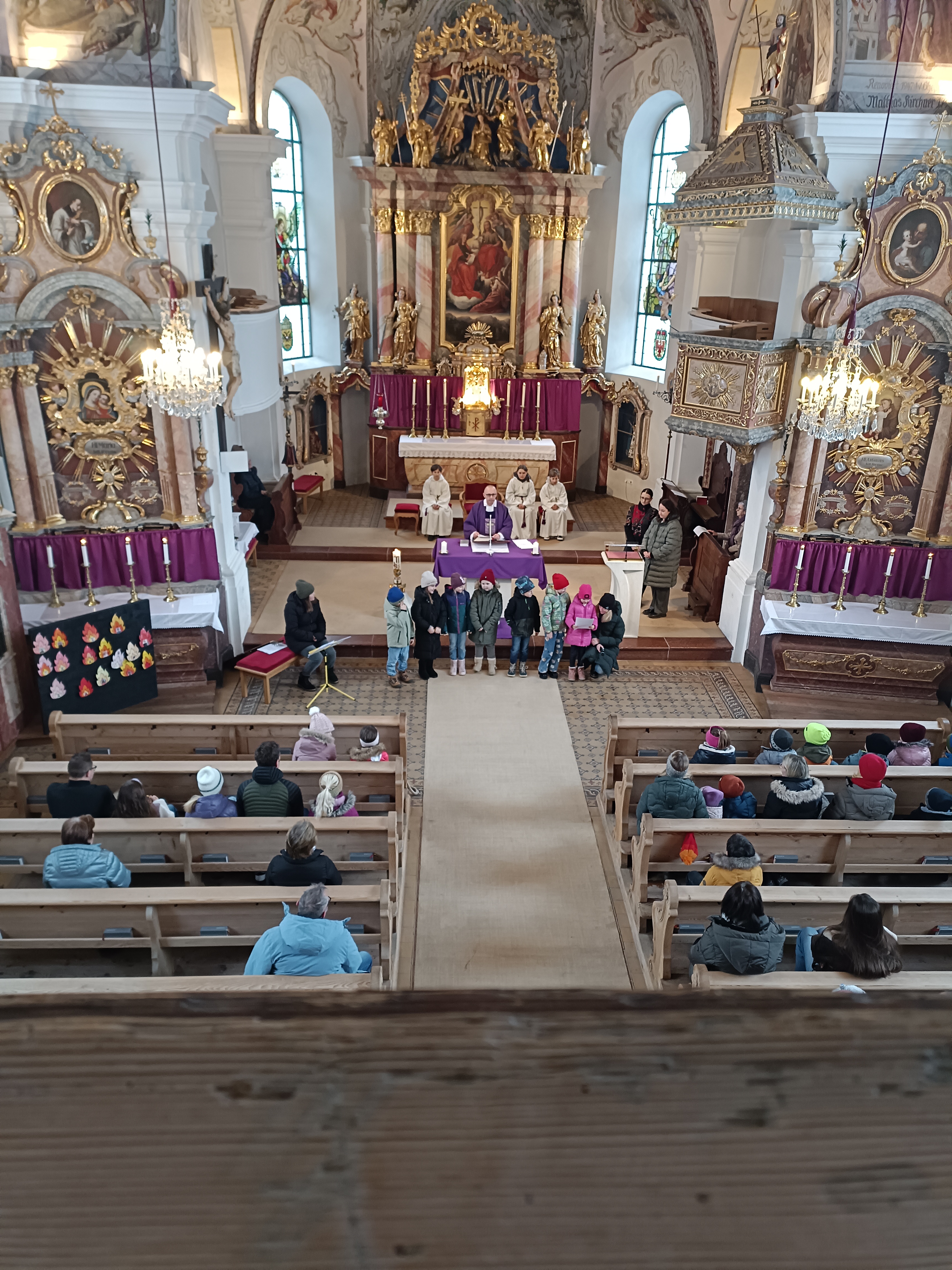 Im Anschluss zog die Prozession gemeinsam in die Kirche ein, wo der festliche Gottesdienst zum Palmsonntag gefeiert wurde. In der wohligen Wärme setzte sich die Feier in einem würdigen Rahmen fort. Die Lesung der Passion und die feierliche Liturgie erinnerten eindrucksvoll an den Beginn der Karwoche. Das feierliche Orgelspiel verlieh der Festmesse eine besonders würdige und festliche Atmosphäre.