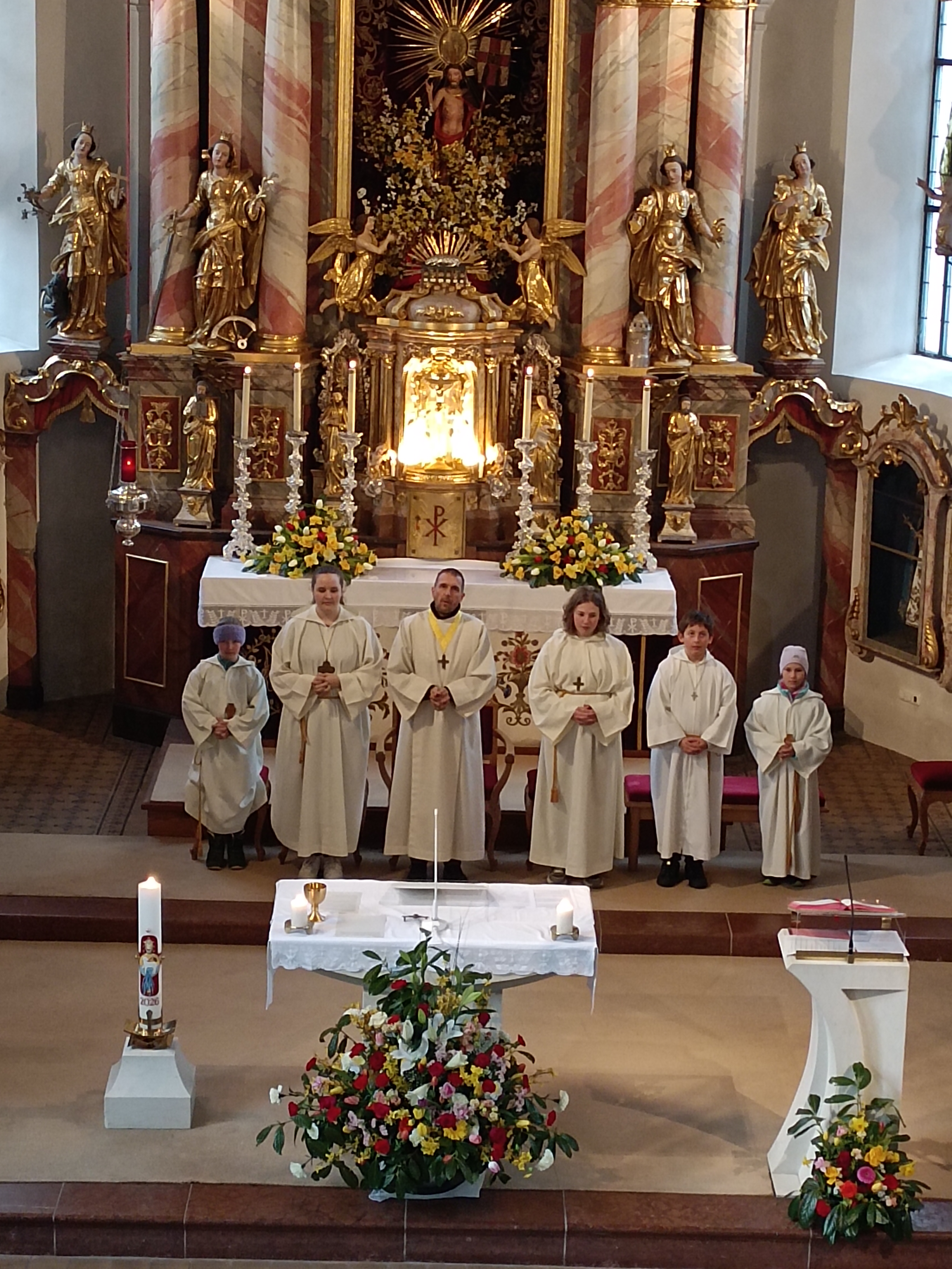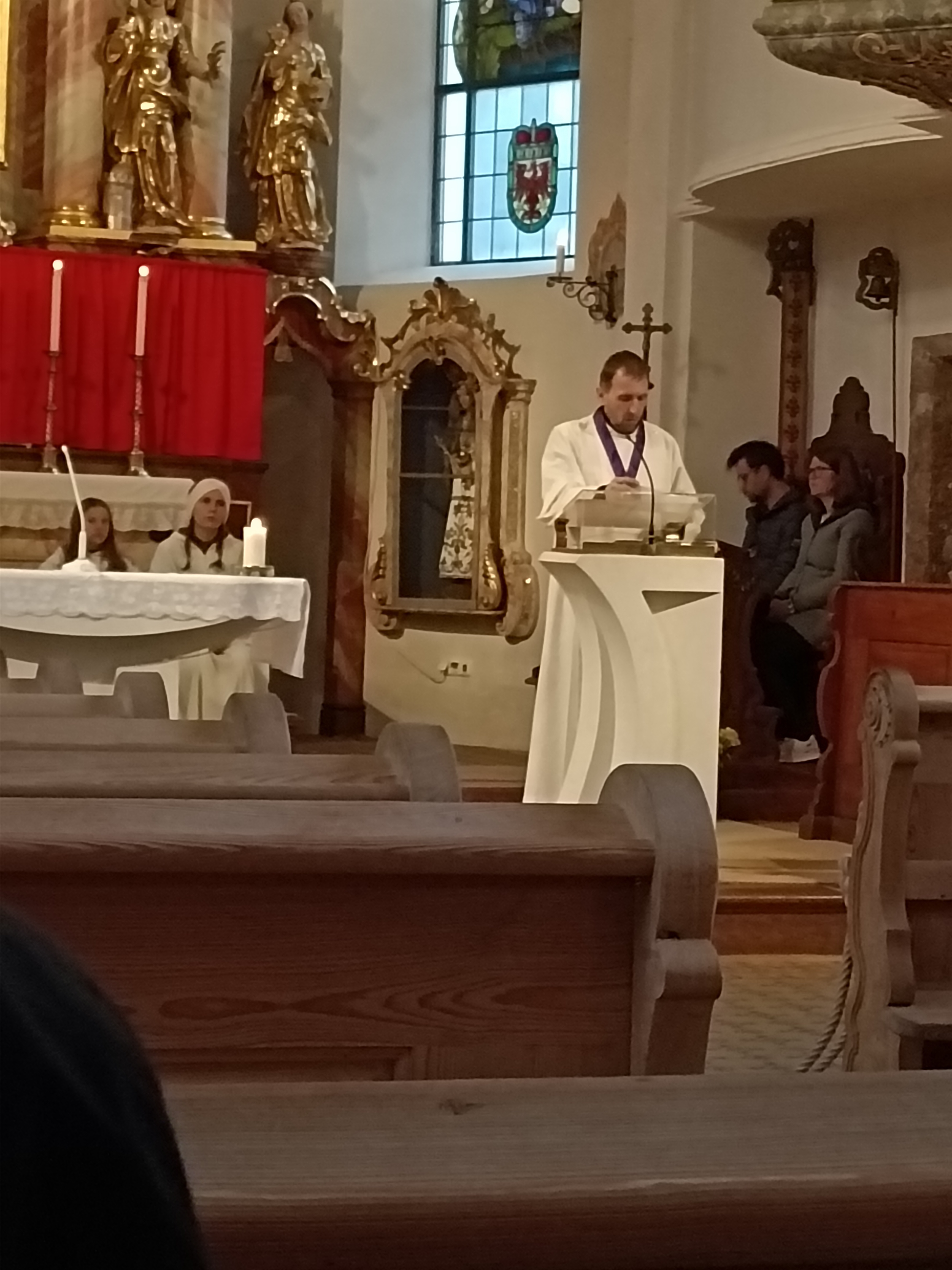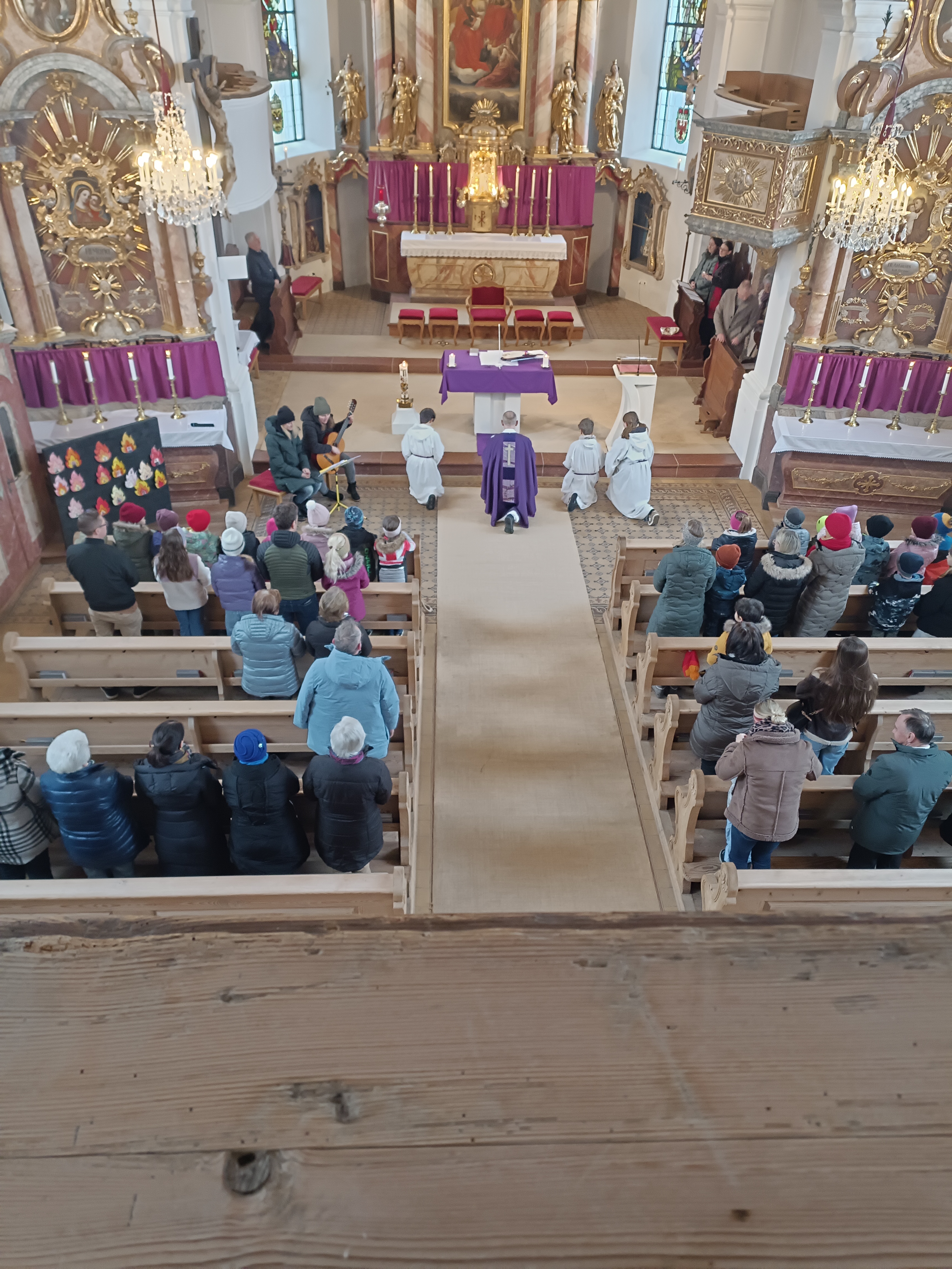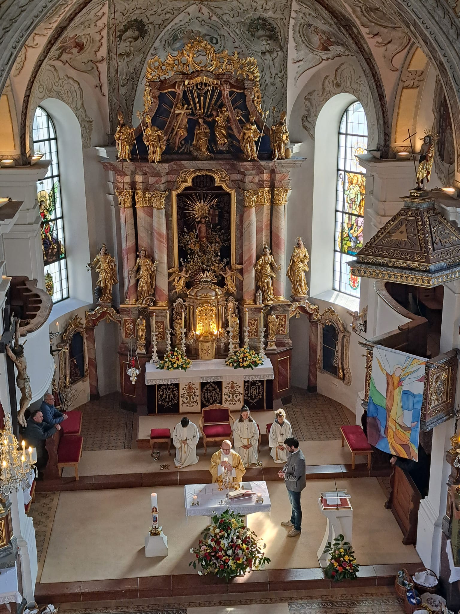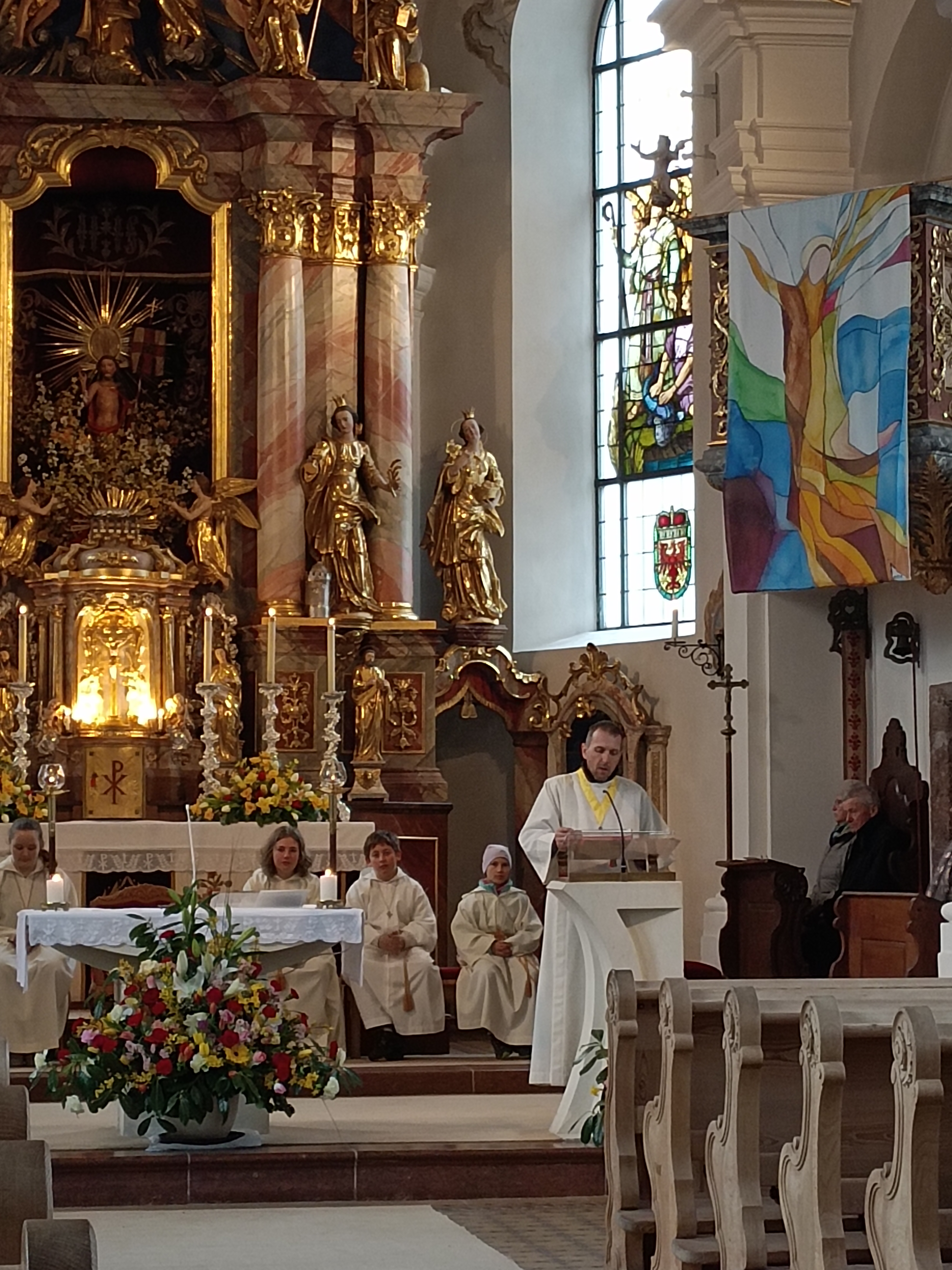 Im Anschluss zog die Prozession gemeinsam in die Kirche ein, wo der festliche Gottesdienst zum Palmsonntag gefeiert wurde. In der wohligen Wärme setzte sich die Feier in einem würdigen Rahmen fort. Die Lesung der Passion und die feierliche Liturgie erinnerten eindrucksvoll an den Beginn der Karwoche. Das feierliche Orgelspiel verlieh der Festmesse eine besonders würdige und festliche Atmosphäre.