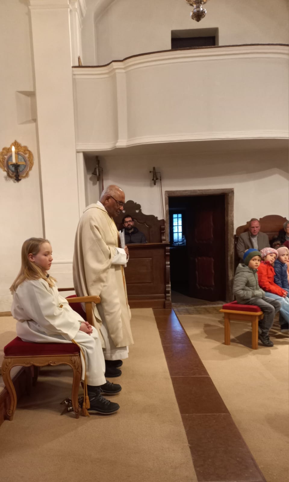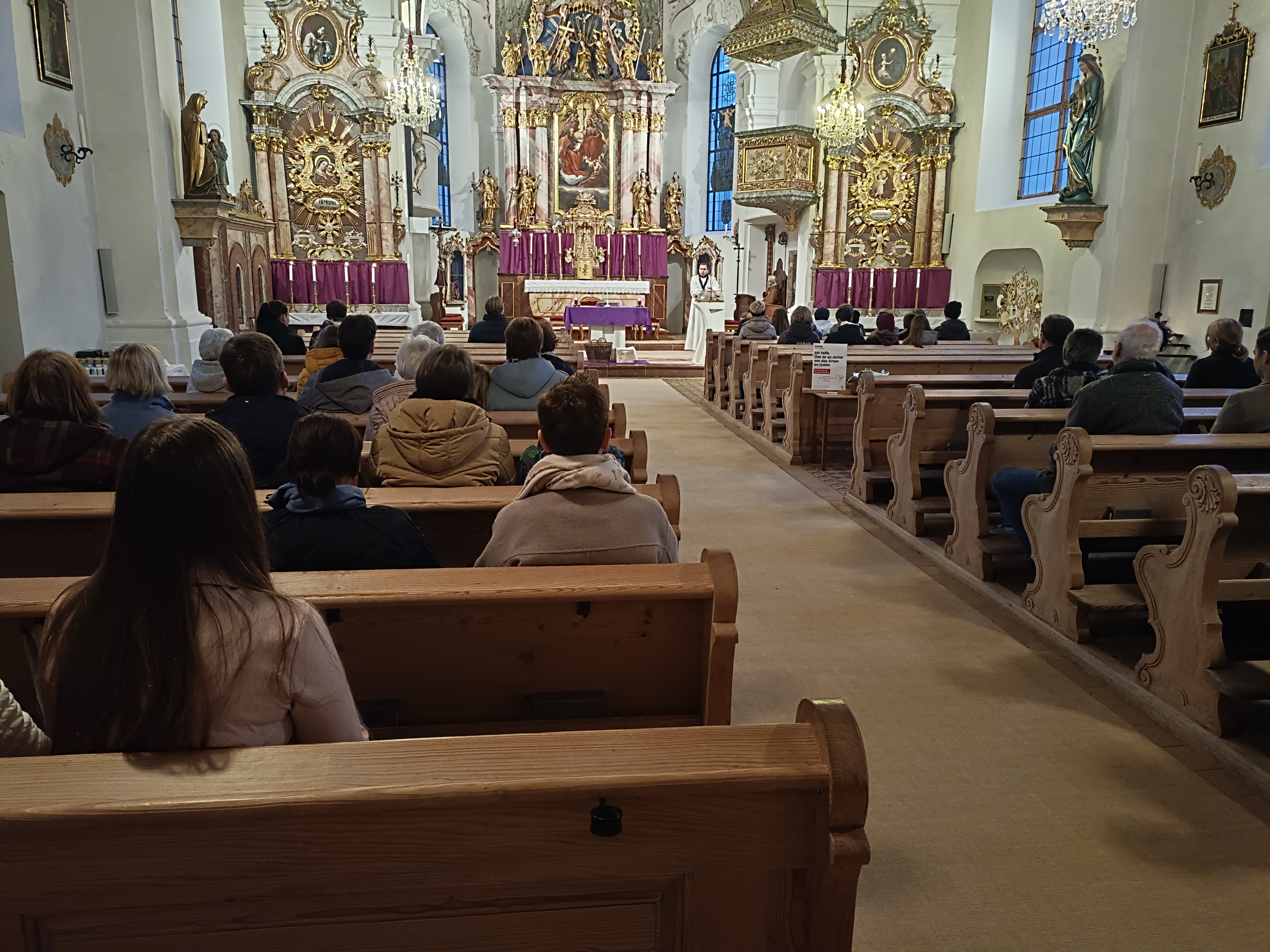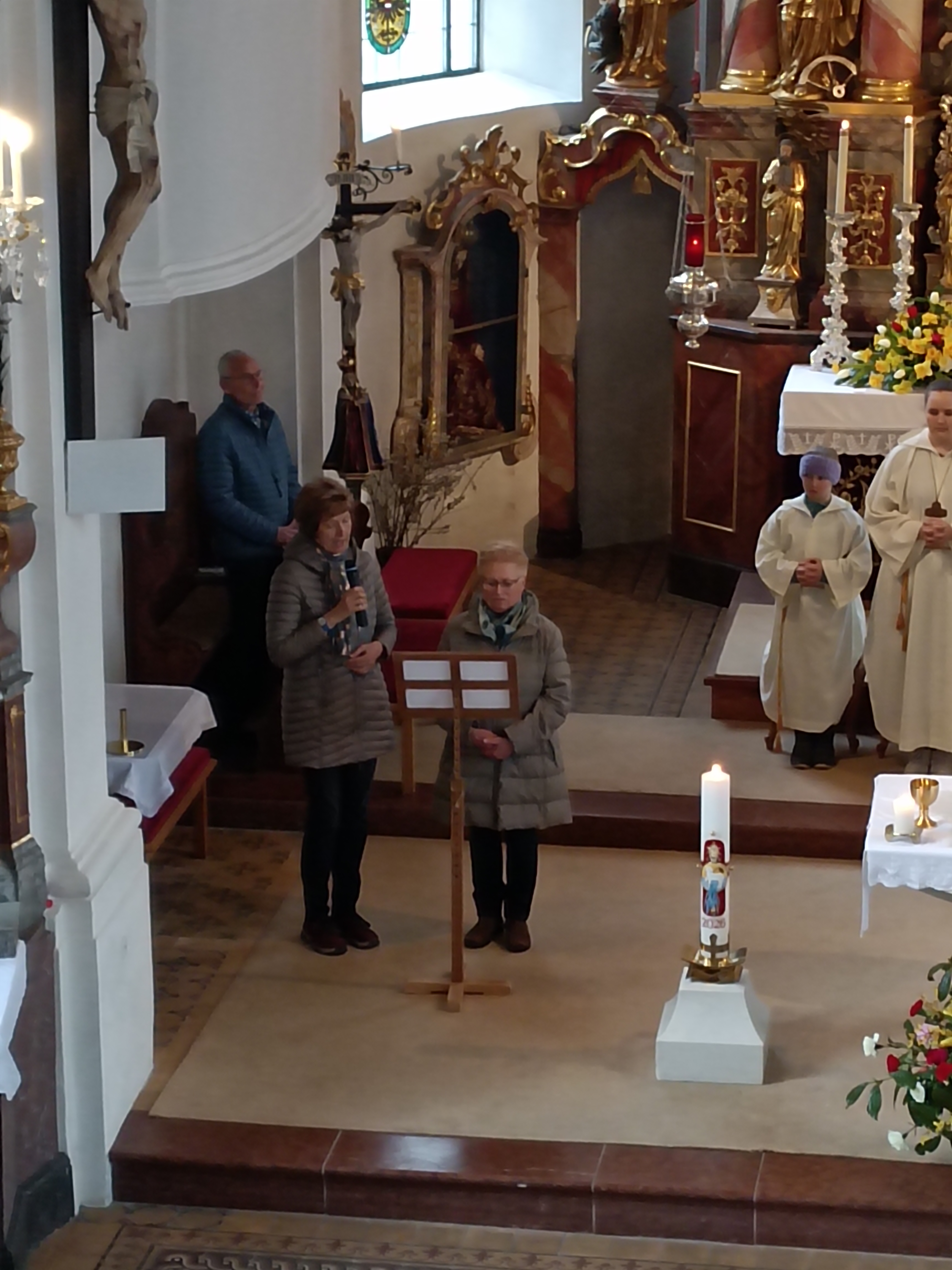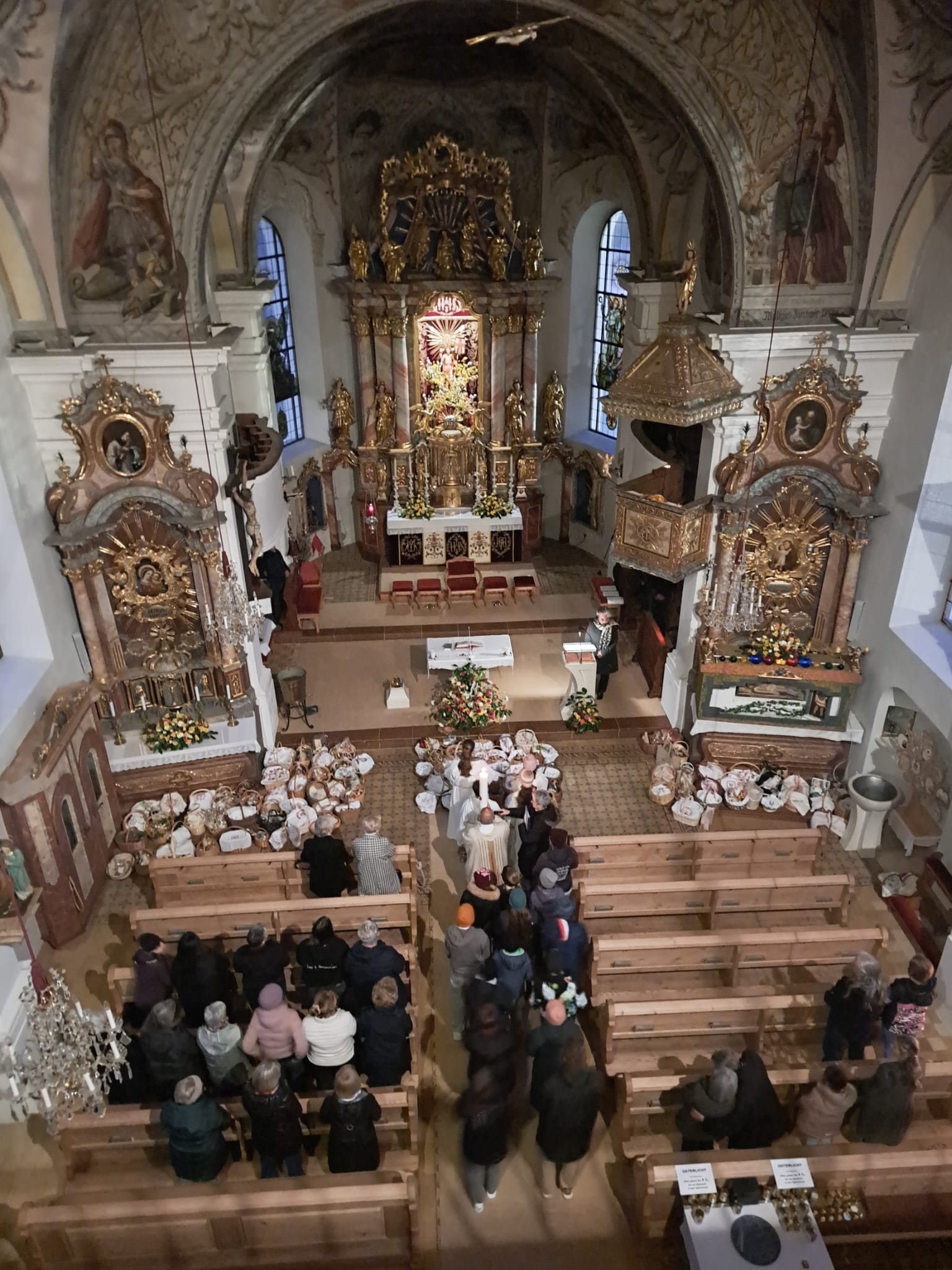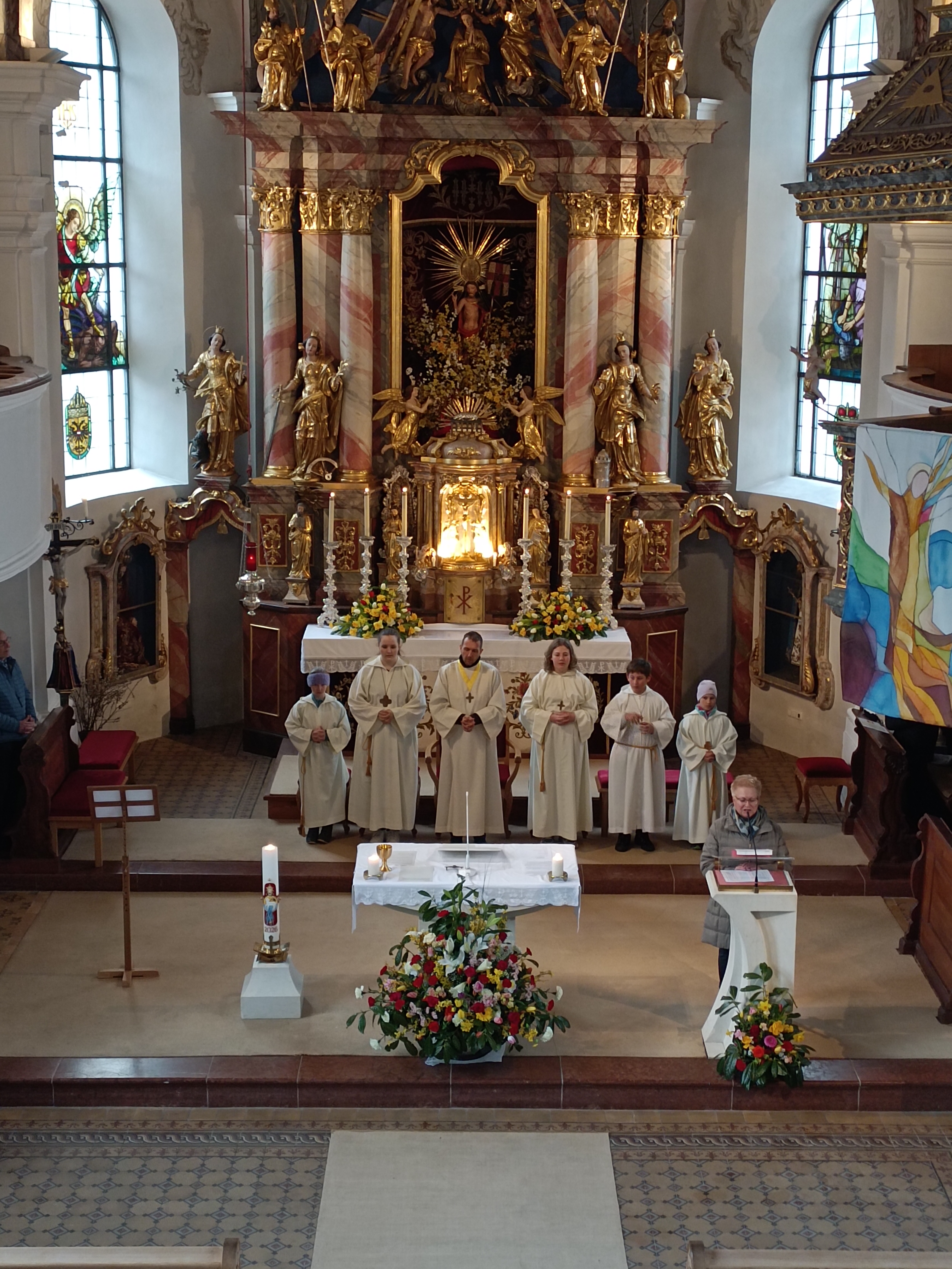 Im Anschluss zog die Prozession gemeinsam in die Kirche ein, wo der festliche Gottesdienst zum Palmsonntag gefeiert wurde. In der wohligen Wärme setzte sich die Feier in einem würdigen Rahmen fort. Die Lesung der Passion und die feierliche Liturgie erinnerten eindrucksvoll an den Beginn der Karwoche. Das feierliche Orgelspiel verlieh der Festmesse eine besonders würdige und festliche Atmosphäre.