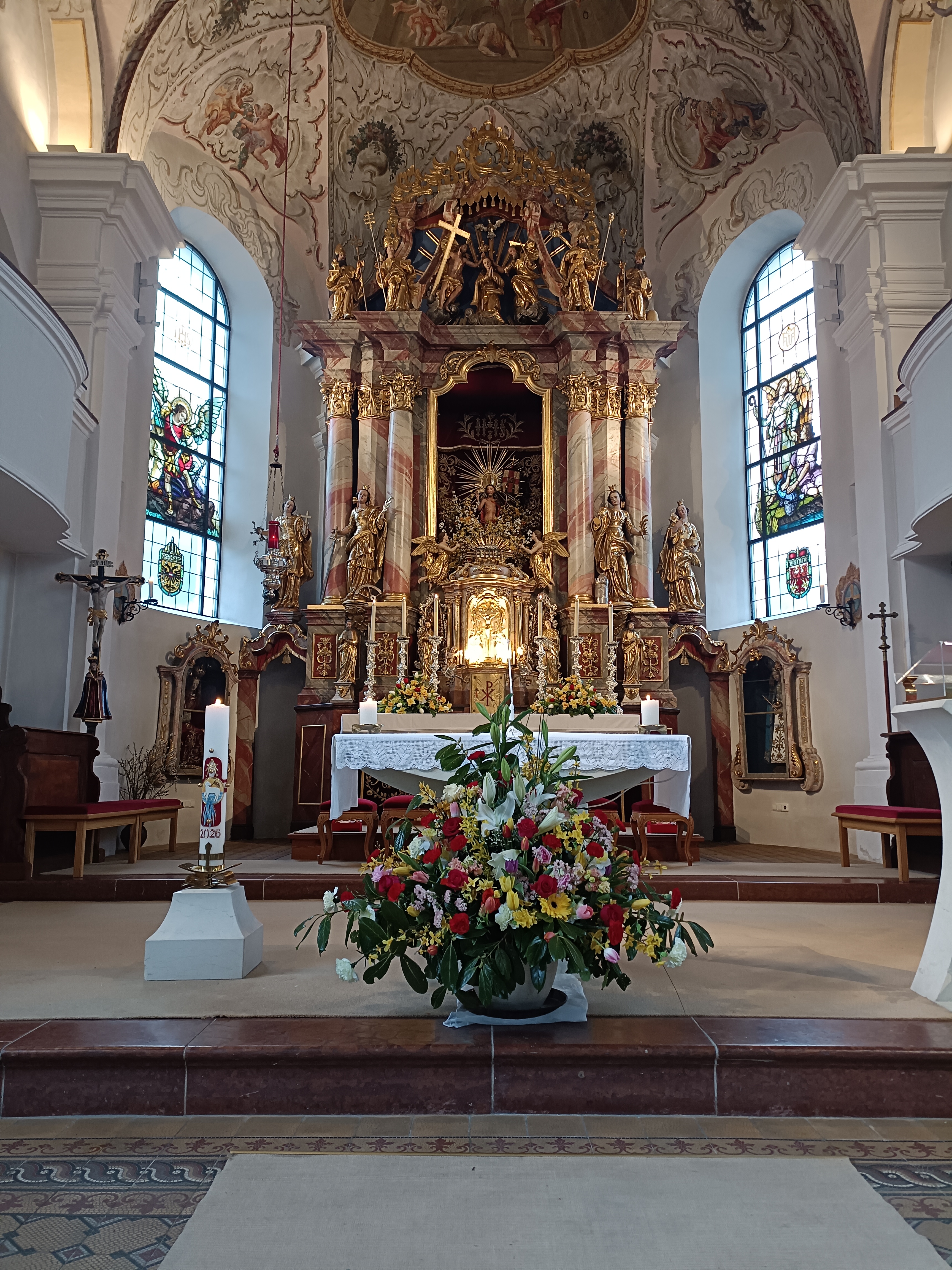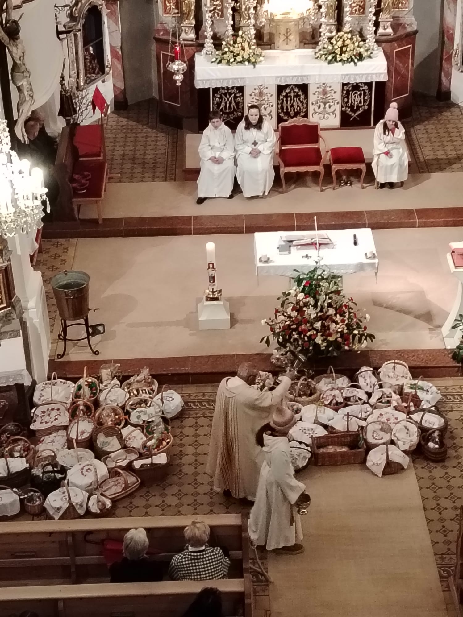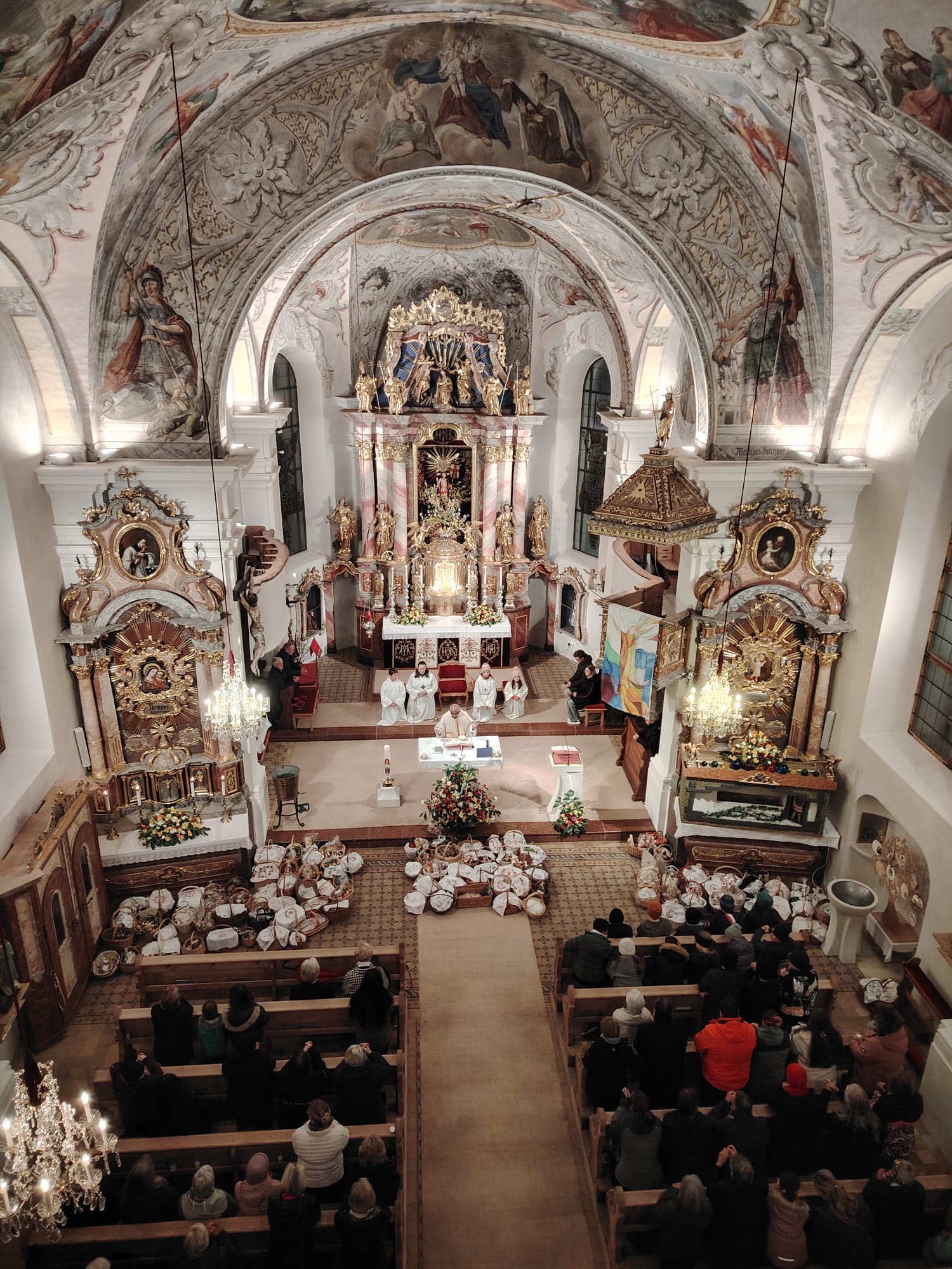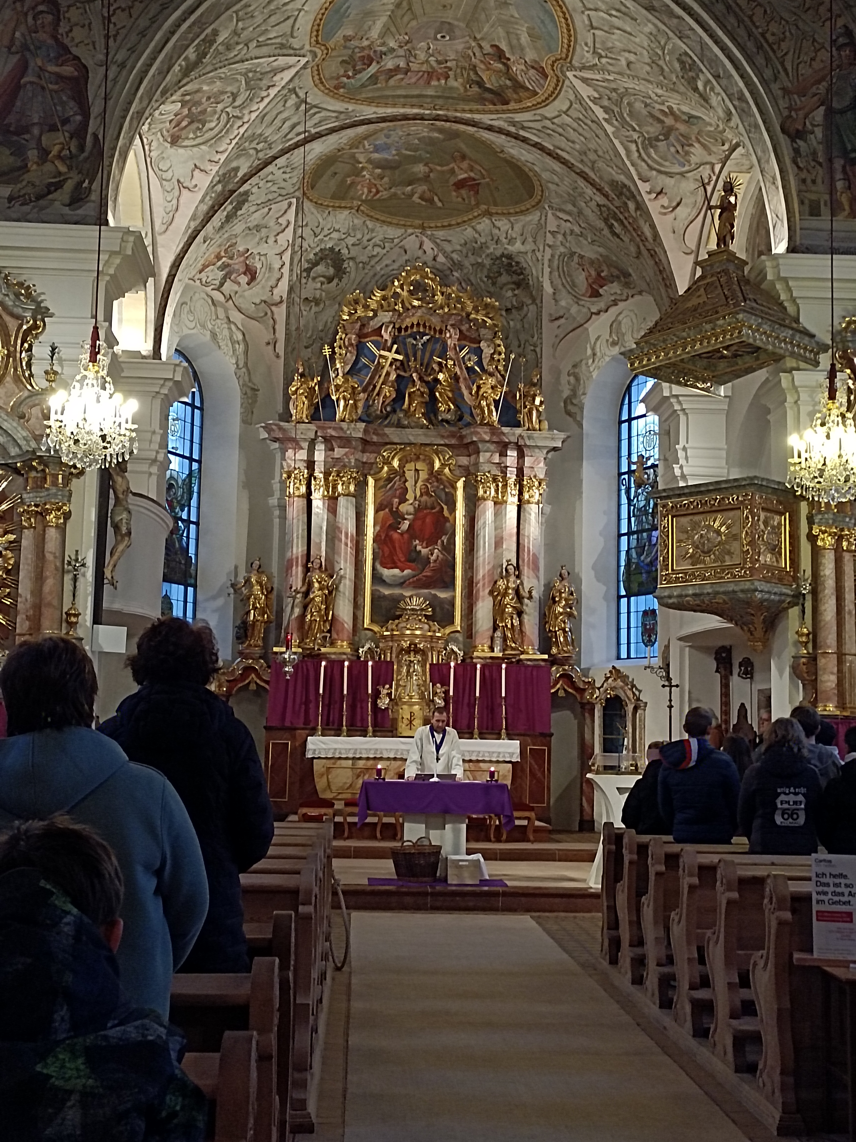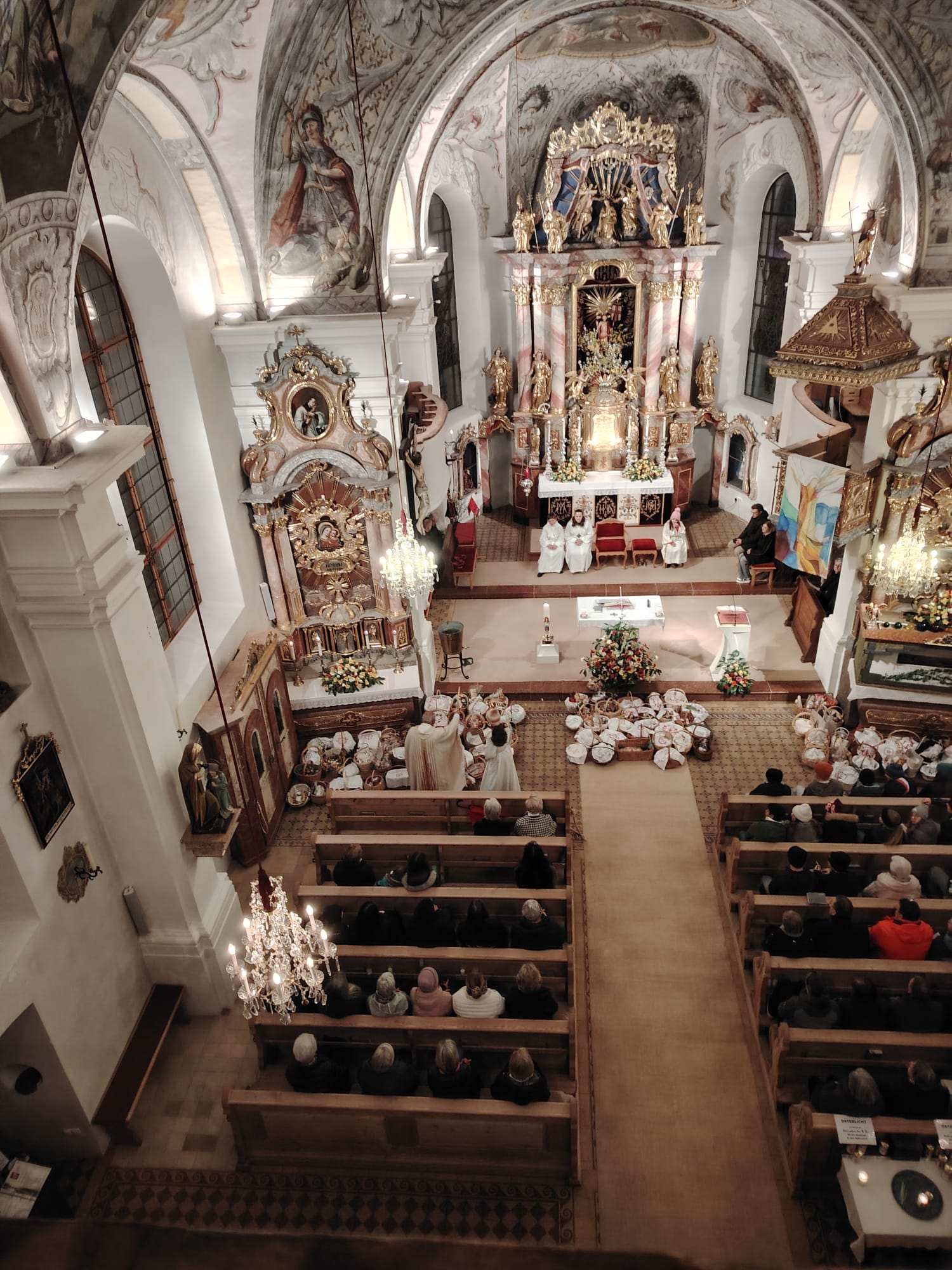 Im Anschluss zog die Prozession gemeinsam in die Kirche ein, wo der festliche Gottesdienst zum Palmsonntag gefeiert wurde. In der wohligen Wärme setzte sich die Feier in einem würdigen Rahmen fort. Die Lesung der Passion und die feierliche Liturgie erinnerten eindrucksvoll an den Beginn der Karwoche. Das feierliche Orgelspiel verlieh der Festmesse eine besonders würdige und festliche Atmosphäre.