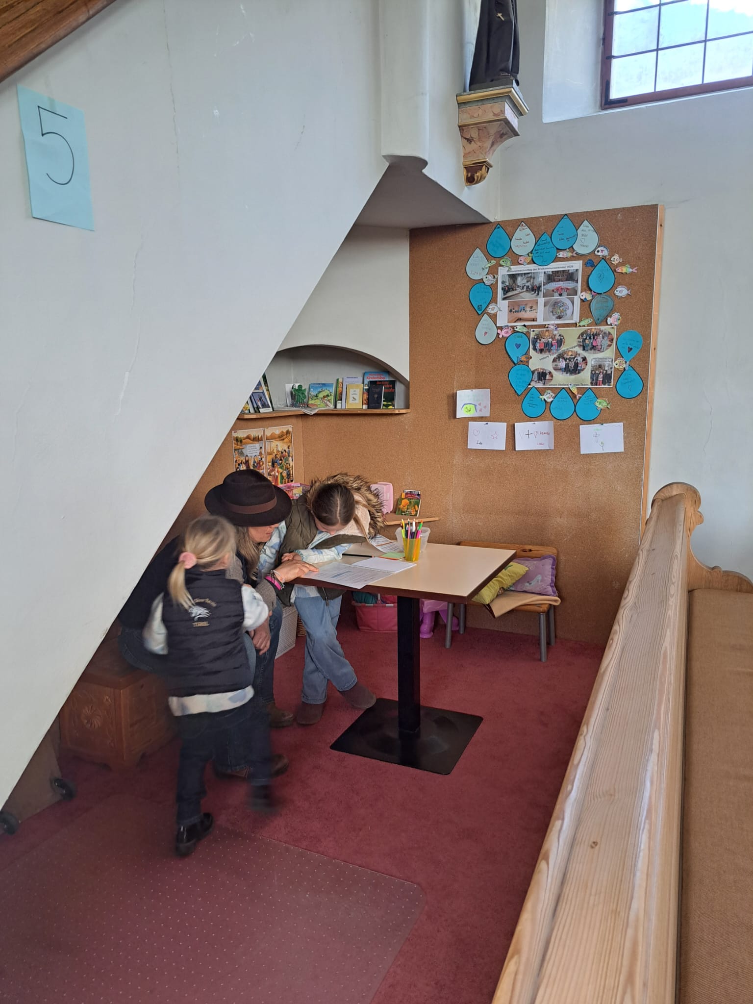Ein weiterer Höhepunkt ist der Stationennachmittag in der Kirche. An den 3 verschiedenen Terminen setzen sich die Kinder mit wichtigen Themen auseinander – wie Wasser, Licht oder einem begehbaren Gottesdienst. So wird der Glaube auf anschauliche und kreative Weise erfahrbar.