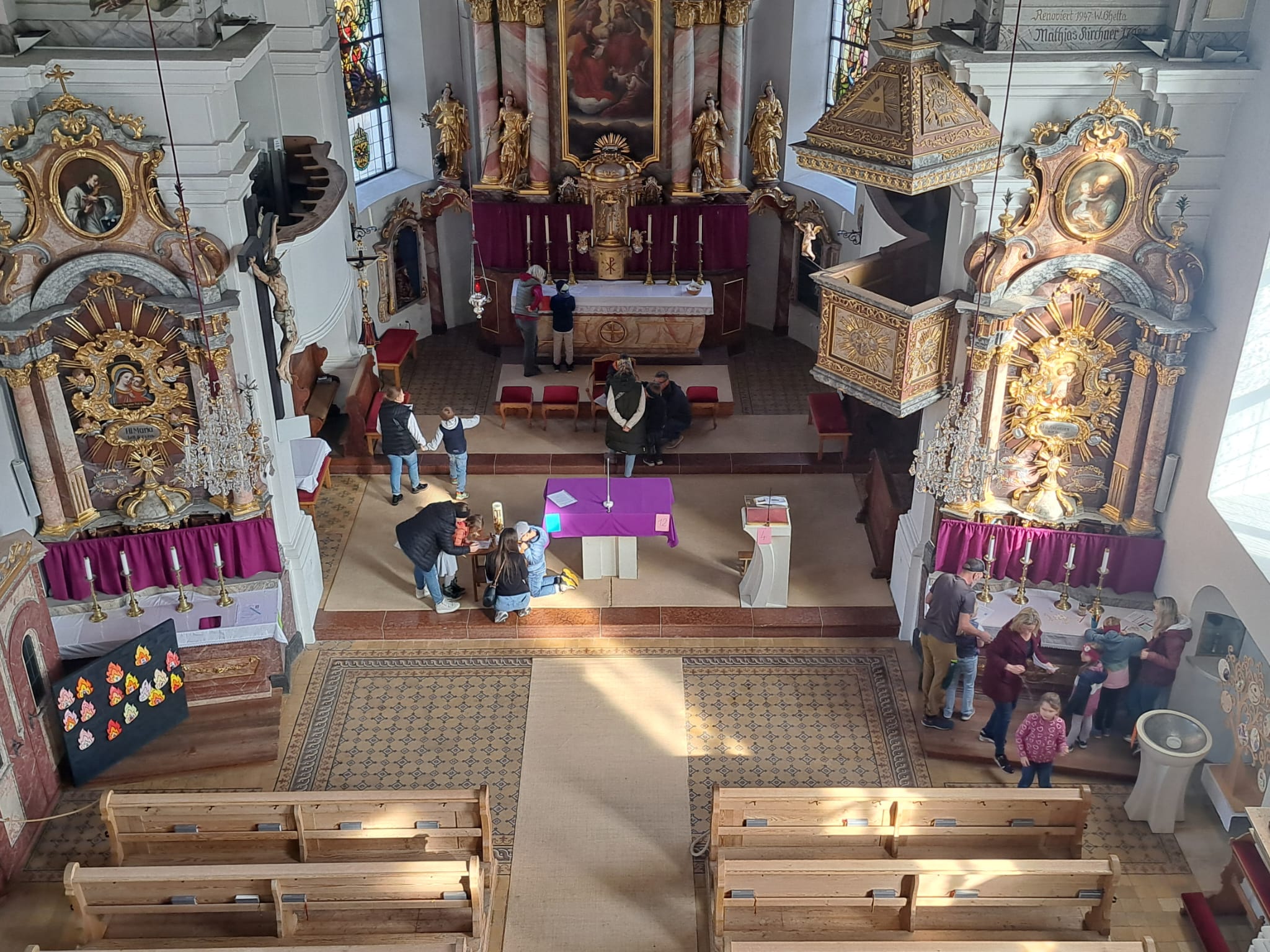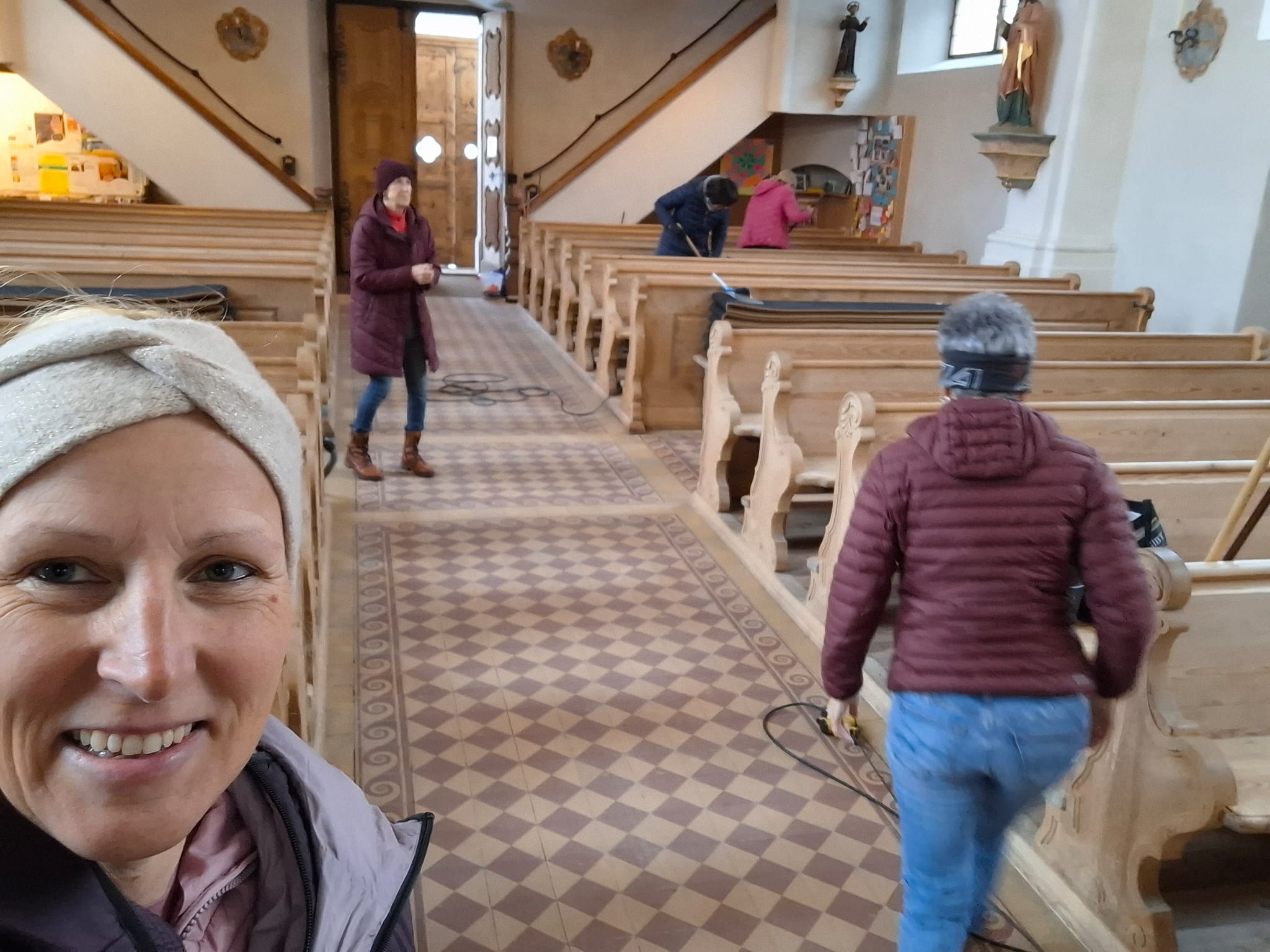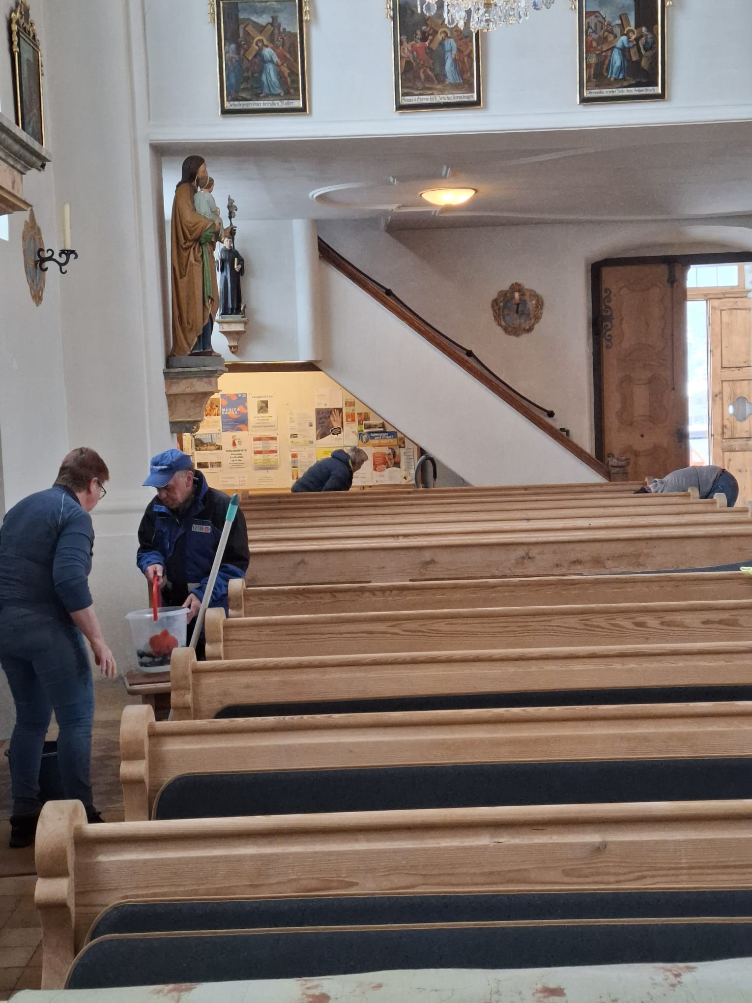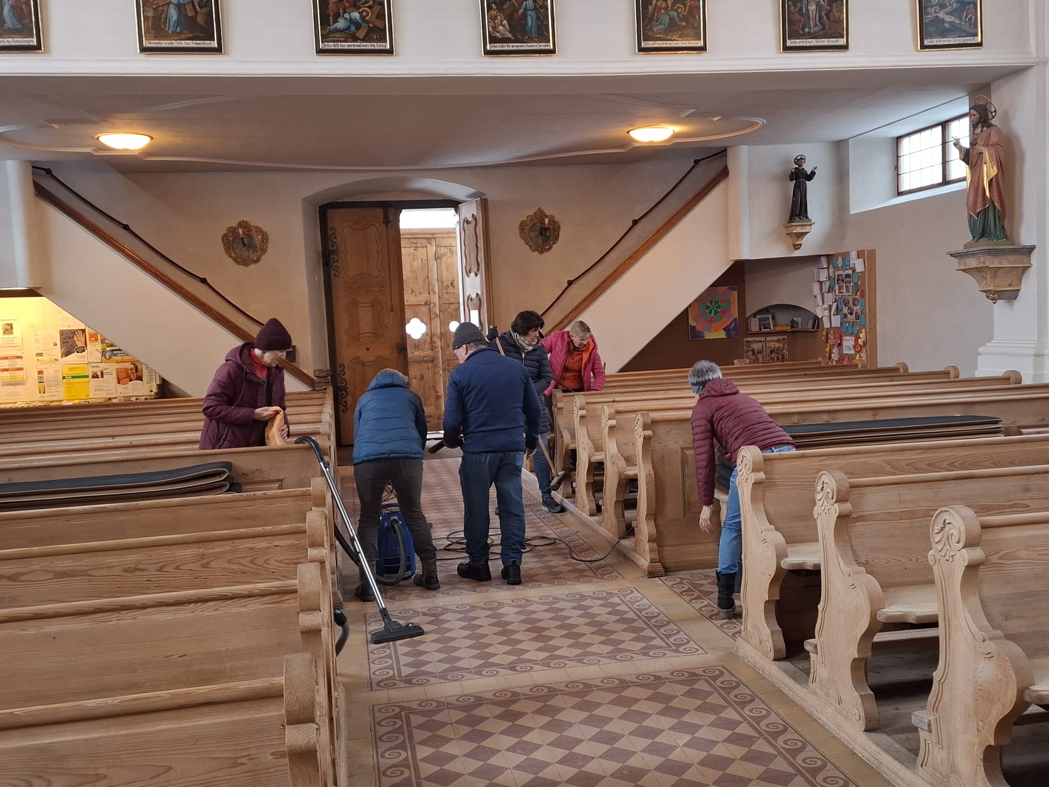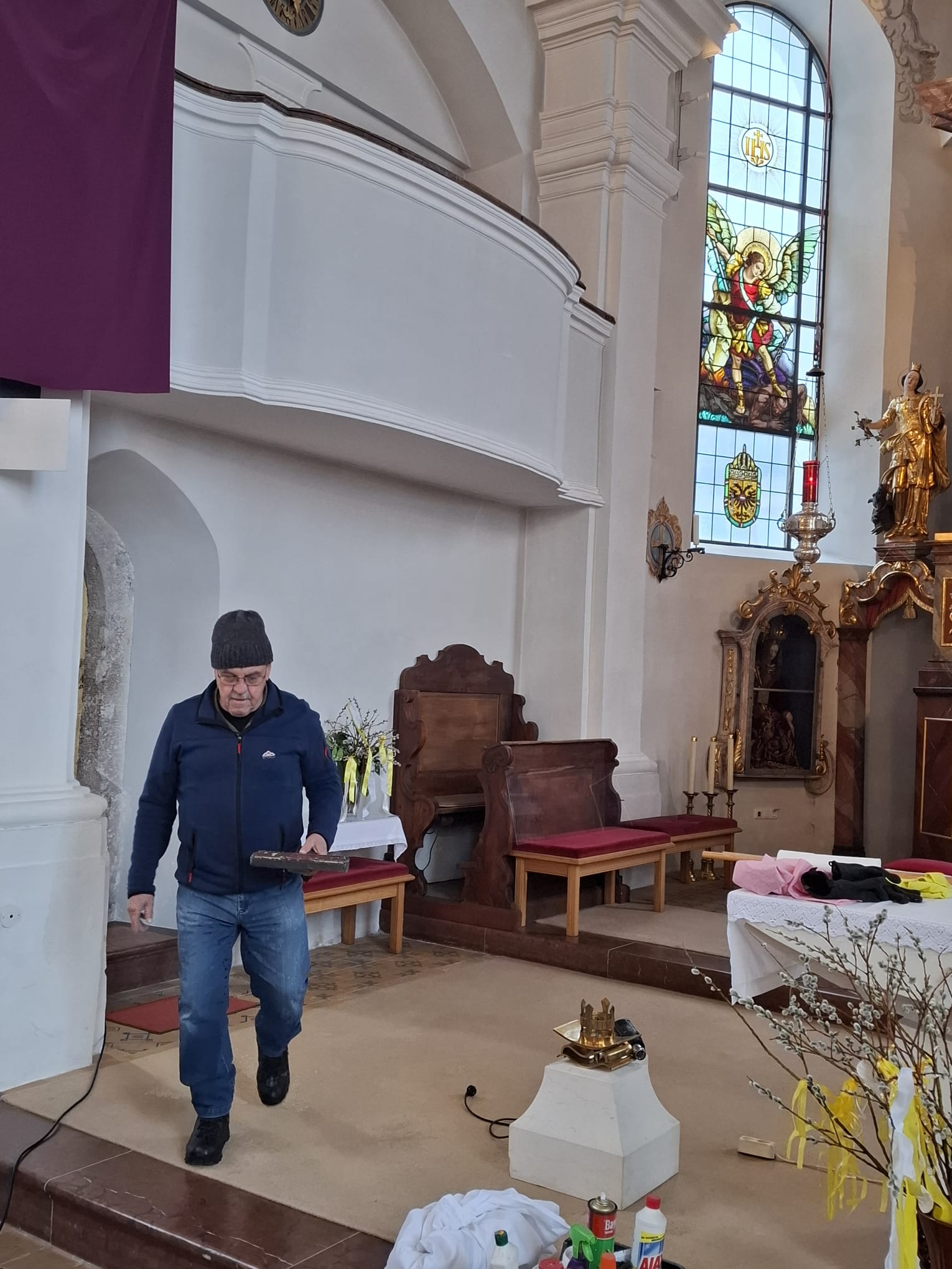 Am Dienstag vor Ostern wird die Kirche geputzt. Freiwillige Helfer*innen bringen sie auf Hochglanz. Zur Belohnung gibt es im Pfarrheim Suppe mit Würsteln, gespendet von Vroni Niederacher.