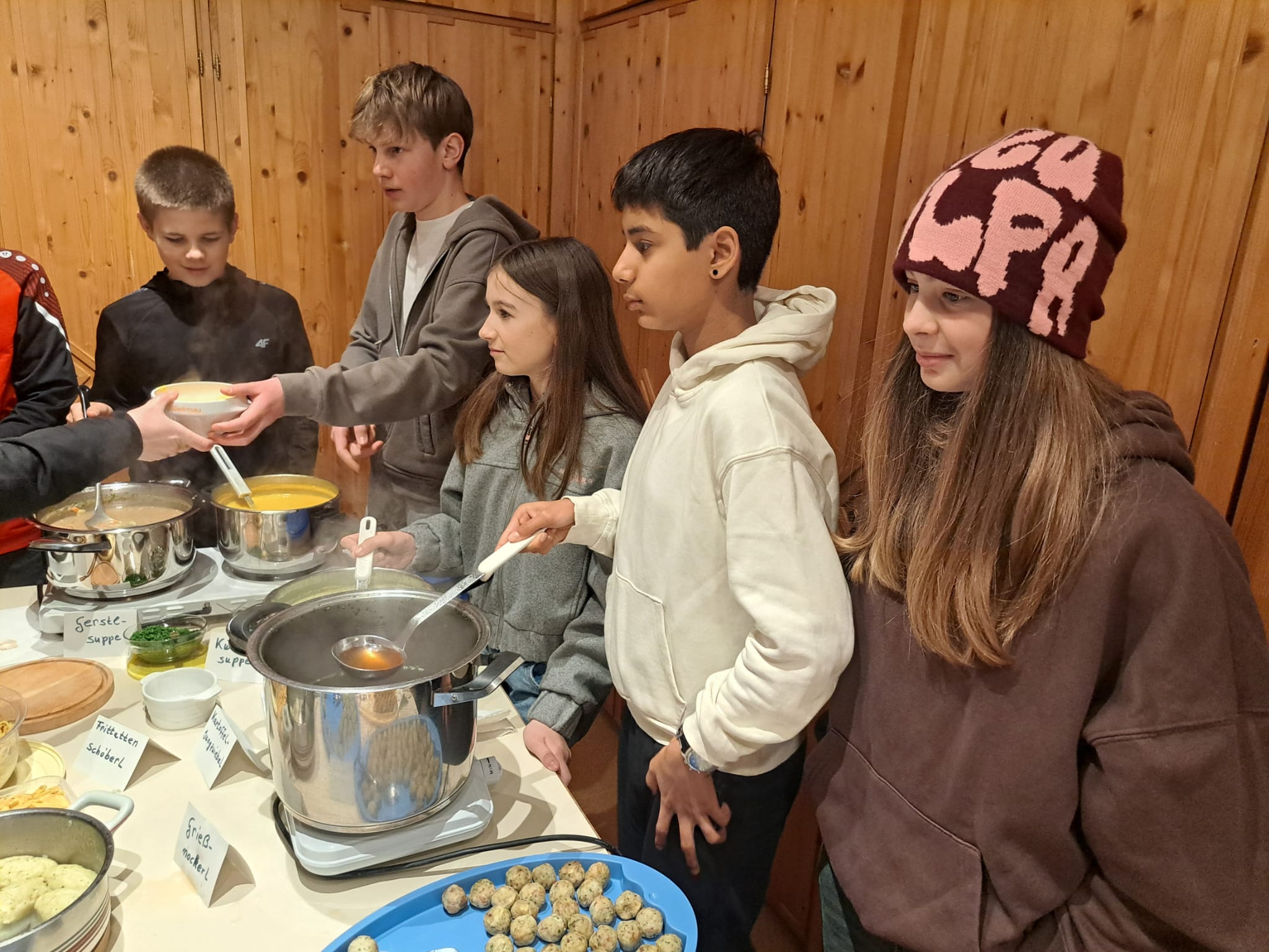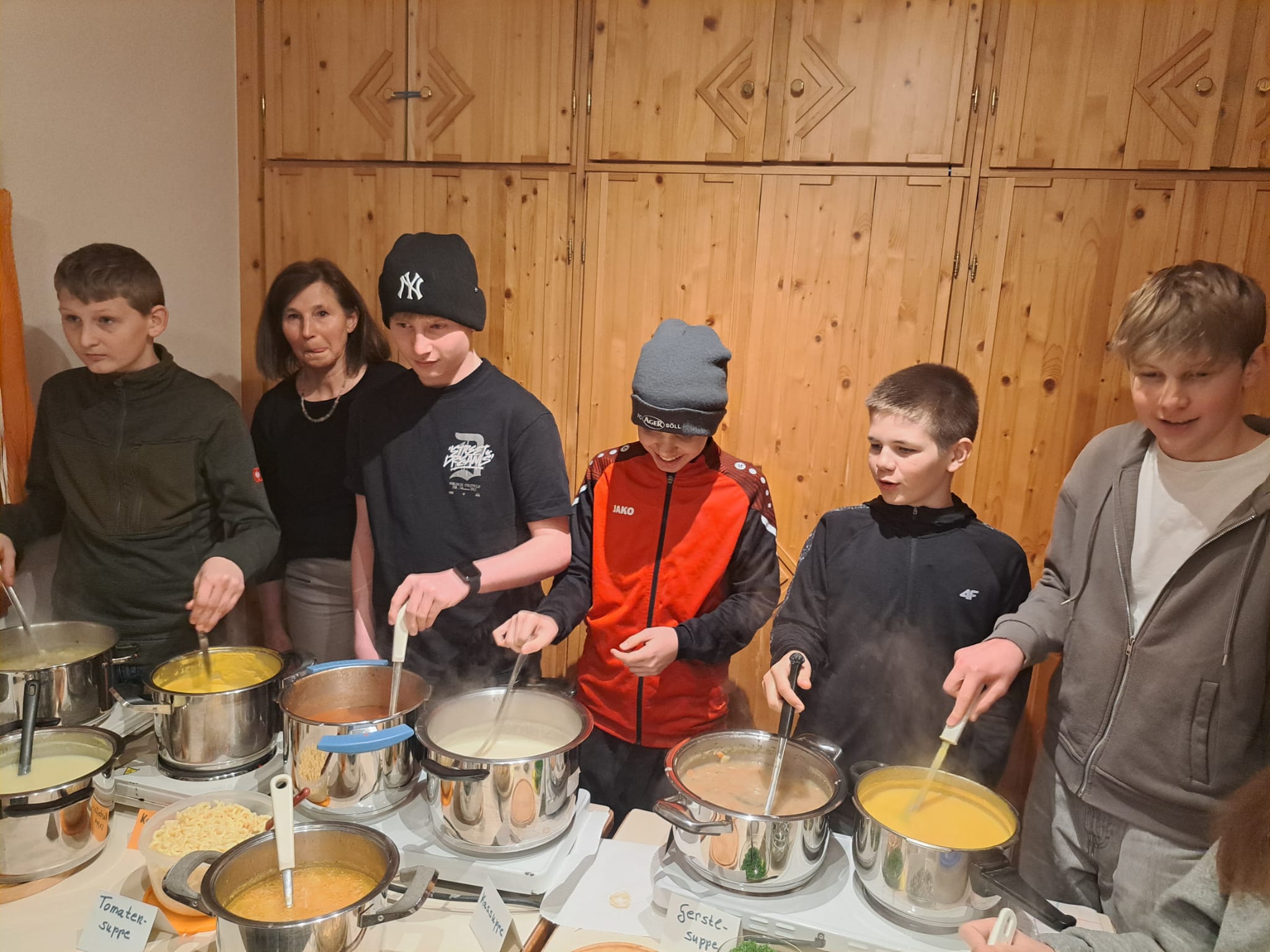 Ein besonderes Highlight ist das Fastensuppenessen im März, das mit einer Bußandacht verbunden ist. Ein Teil der Firmlinge gestaltet diese Andacht aktiv mit, indem sie verschiedene Texte und Gedanken lesen und so Impulse einbringen. Die anderen Firmlinge helfen tatkräftig beim Ausschenken der Fastensuppen mit.
