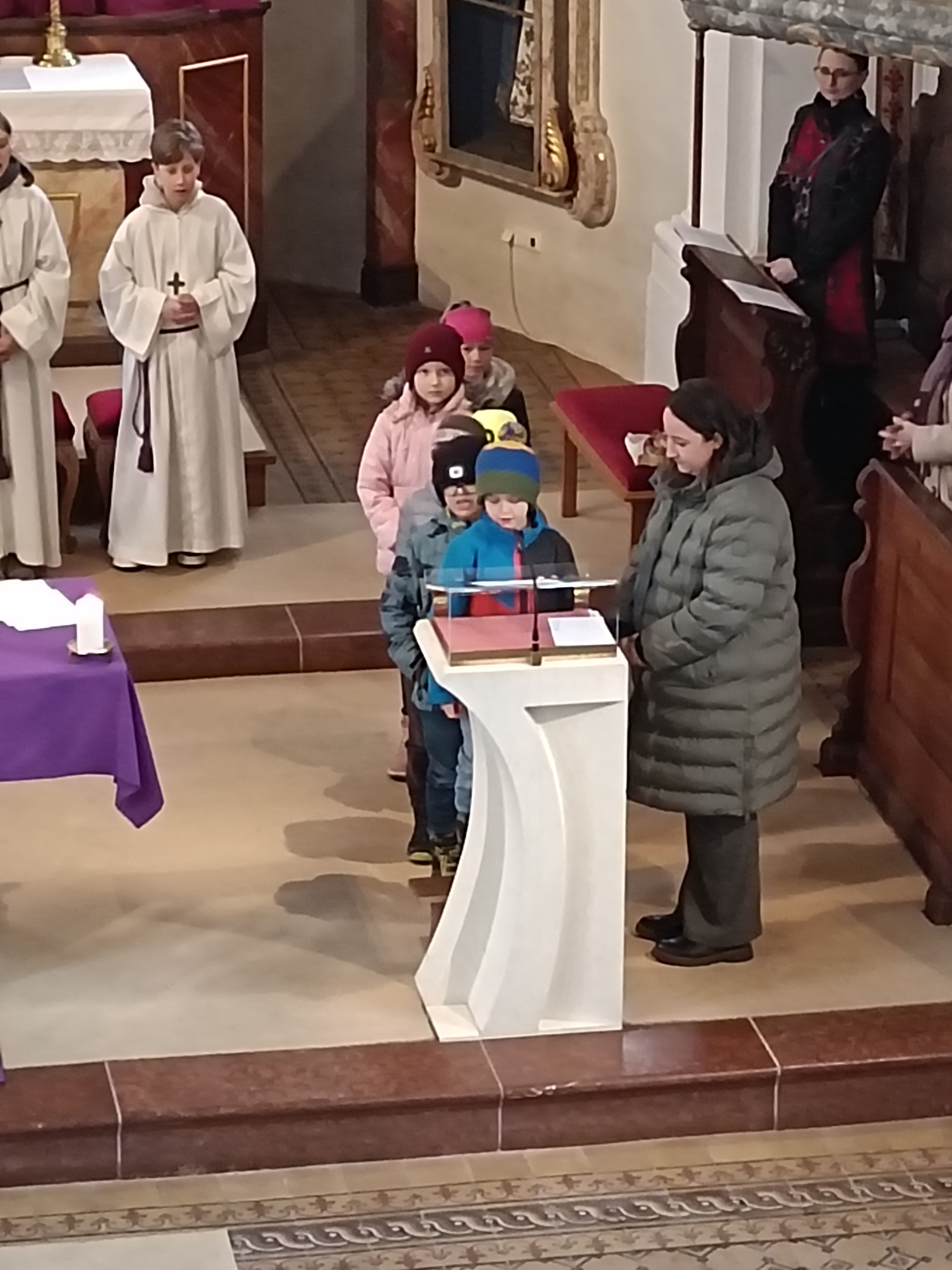 Auch die Familiengottesdienste sind ein wichtiger Teil der Vorbereitung. Die Kinder wirken aktiv mit: Sie lesen Texte und gestalten die Feiern lebendig mit.