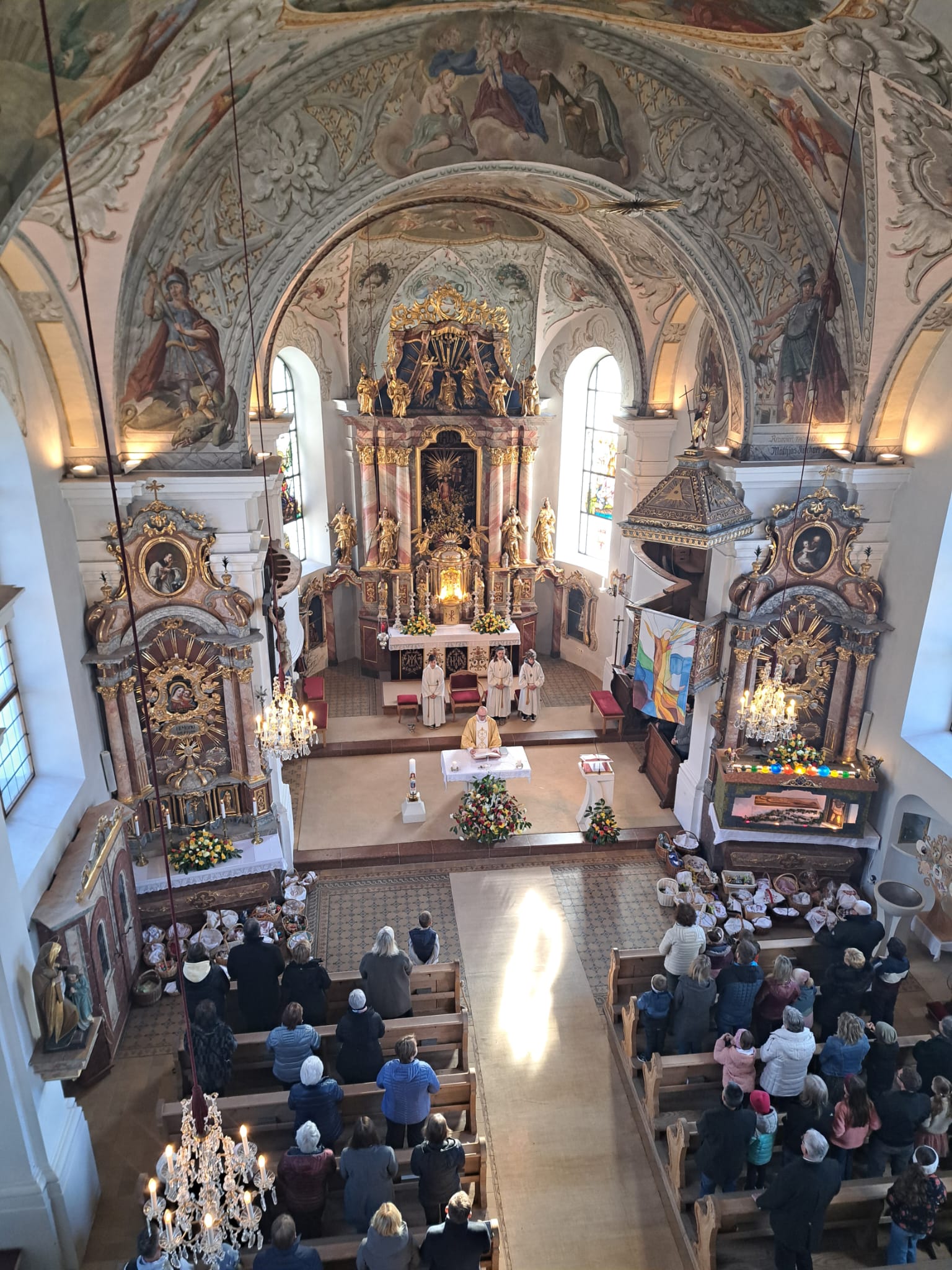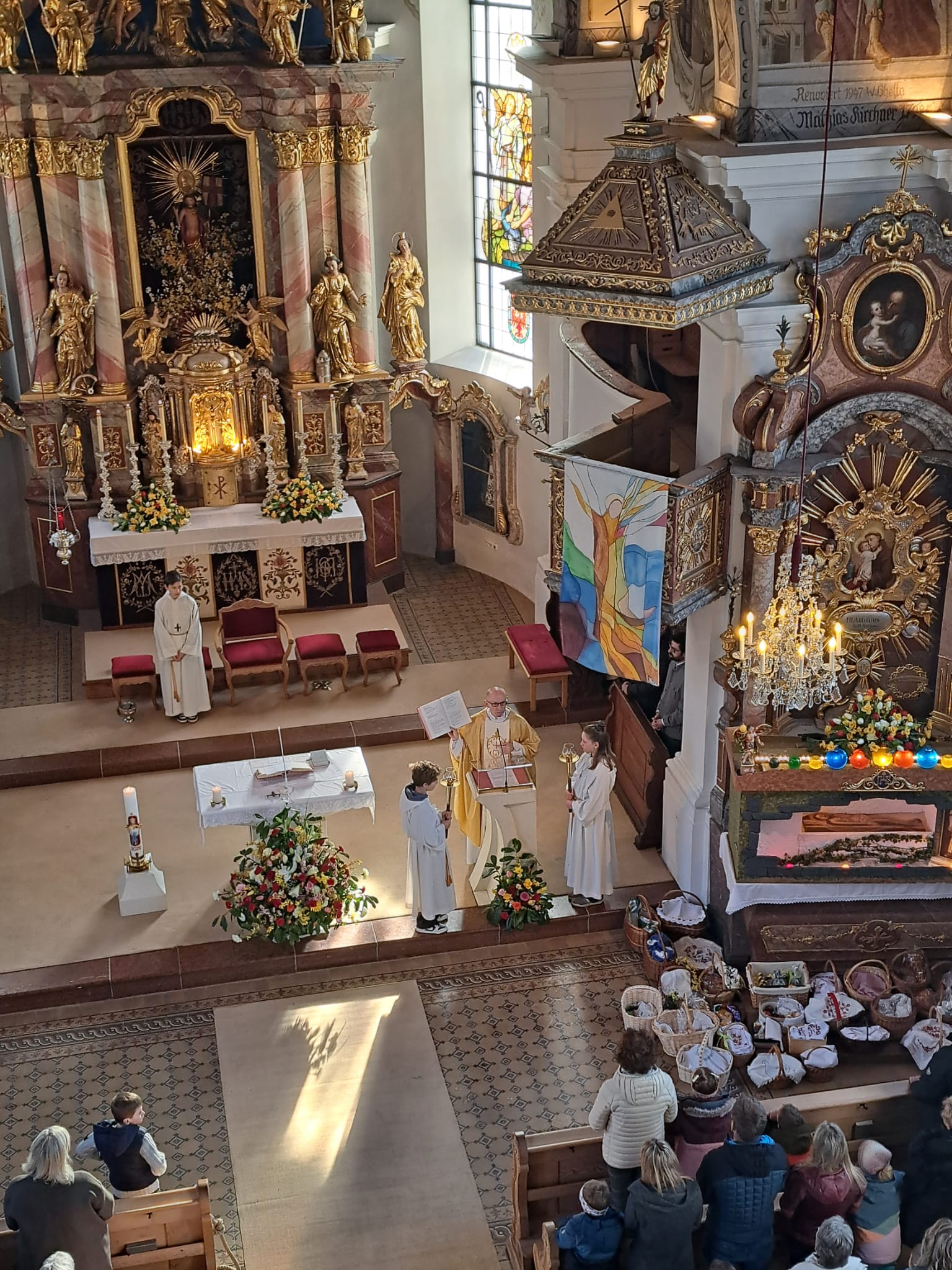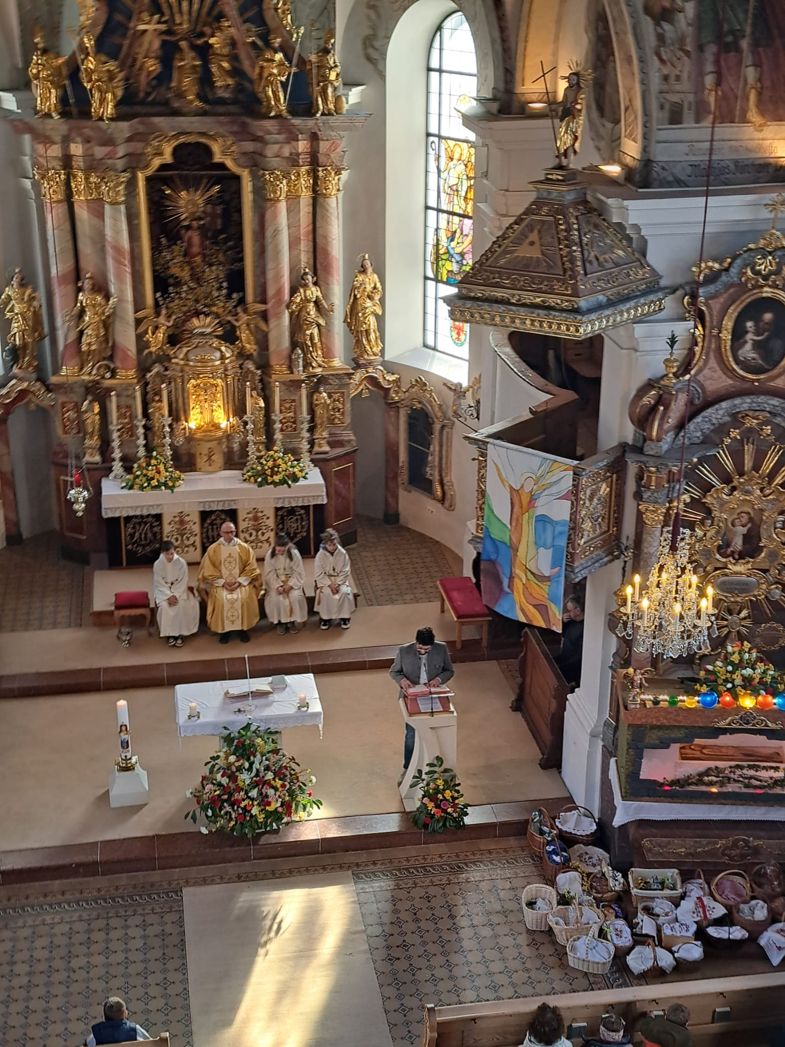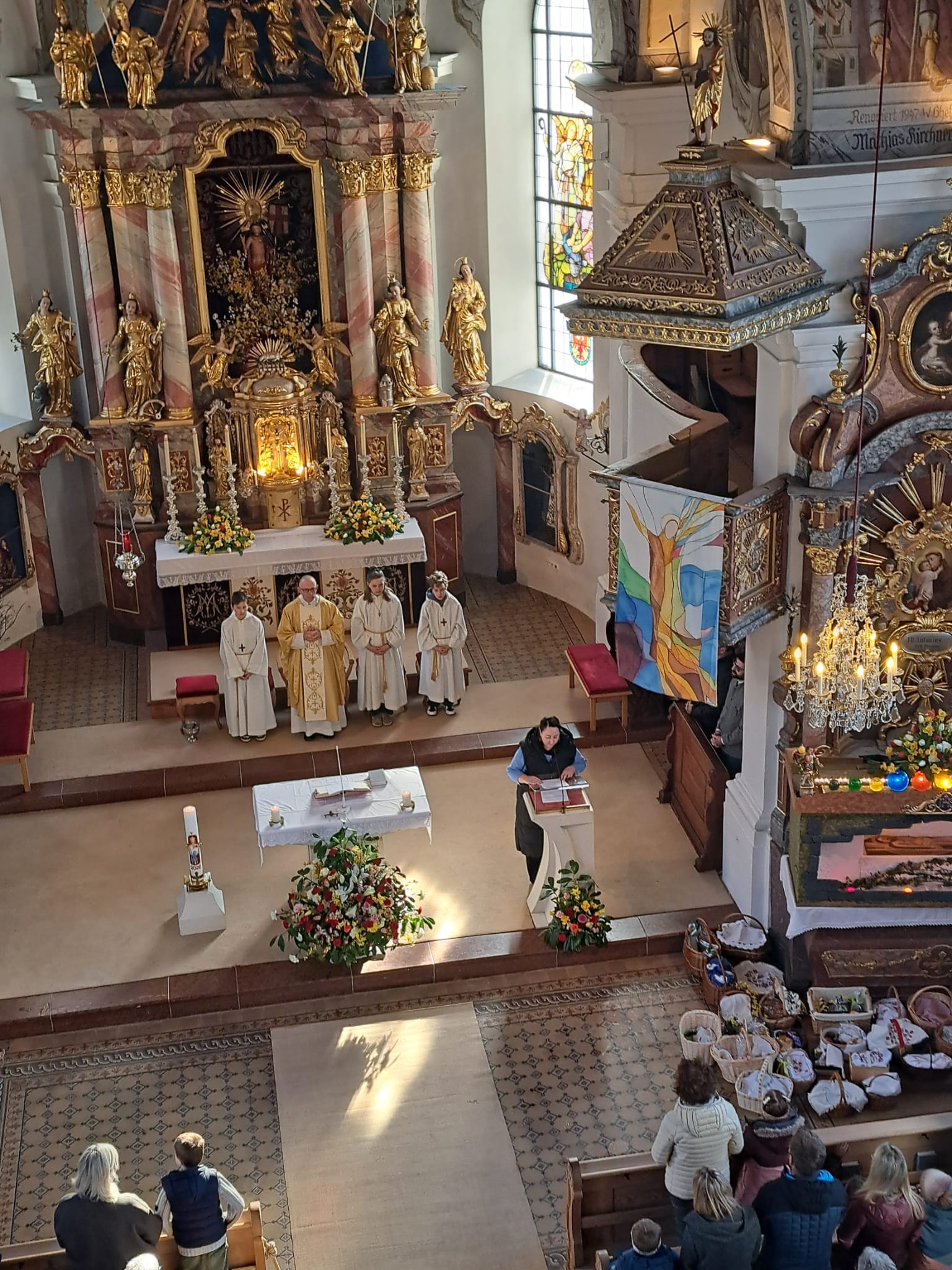 Der Ostersonntag ist das zentrale Fest des Christentums und feiert die Auferstehung Jesu von den Toten. Die Kirche ist festlich geschmückt, und viele bringen wieder Speisekörbe mit. So feiern wir einen feierlichen Gottesdienst mit entsprechender musikalischer Gestaltung.