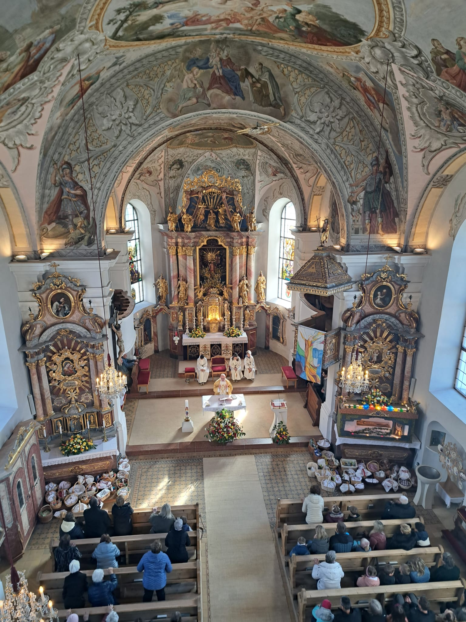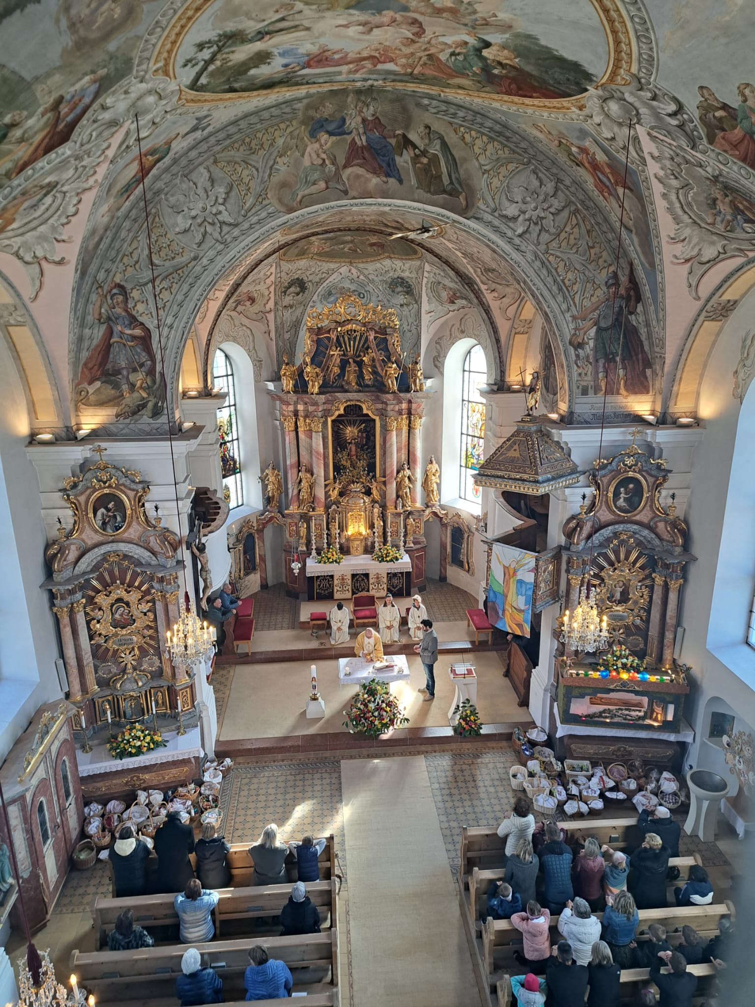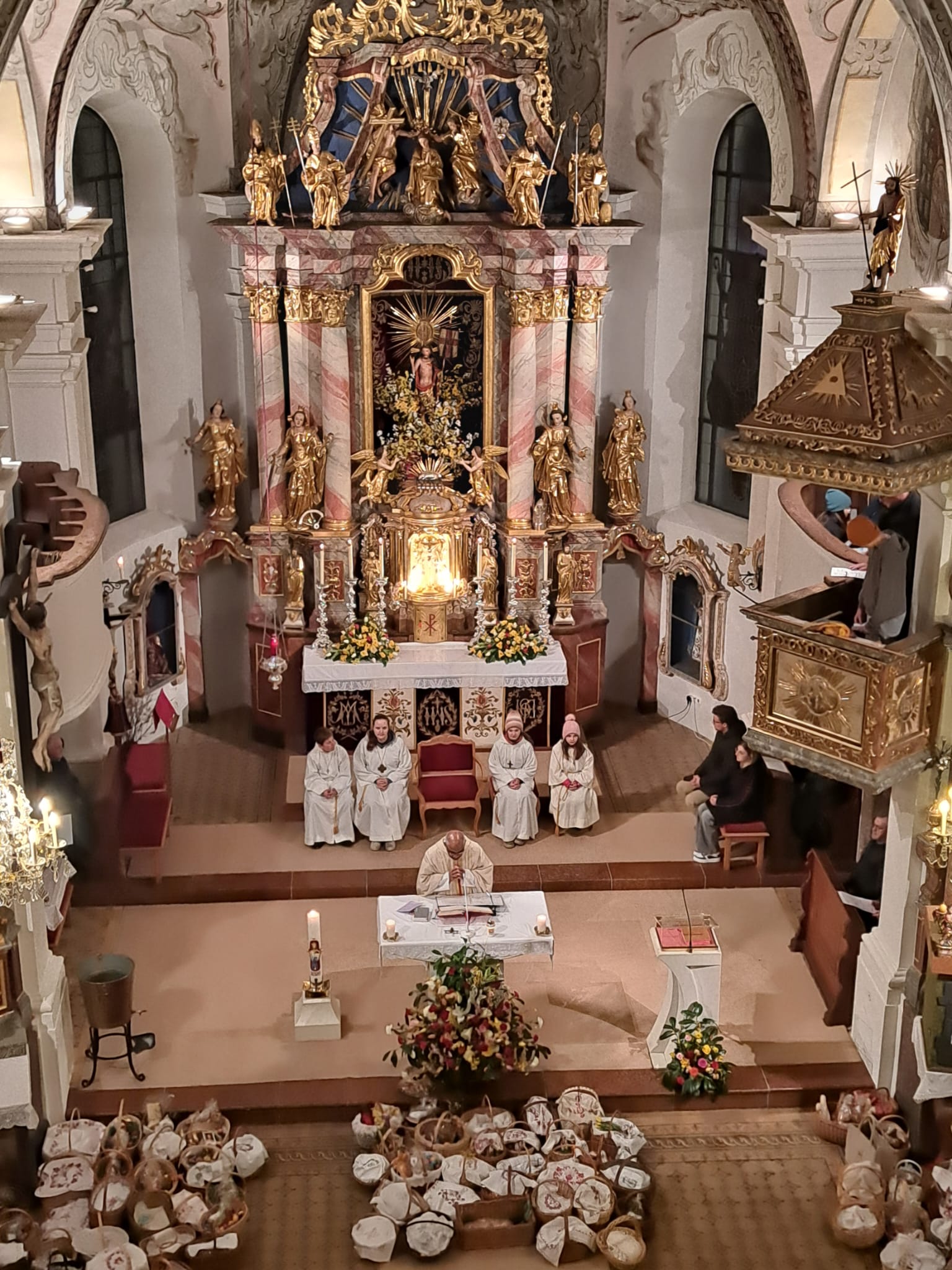 Der Ostersonntag ist das zentrale Fest des Christentums und feiert die Auferstehung Jesu von den Toten. Die Kirche ist festlich geschmückt, und viele bringen wieder Speisekörbe mit. So feiern wir einen feierlichen Gottesdienst mit entsprechender musikalischer Gestaltung.