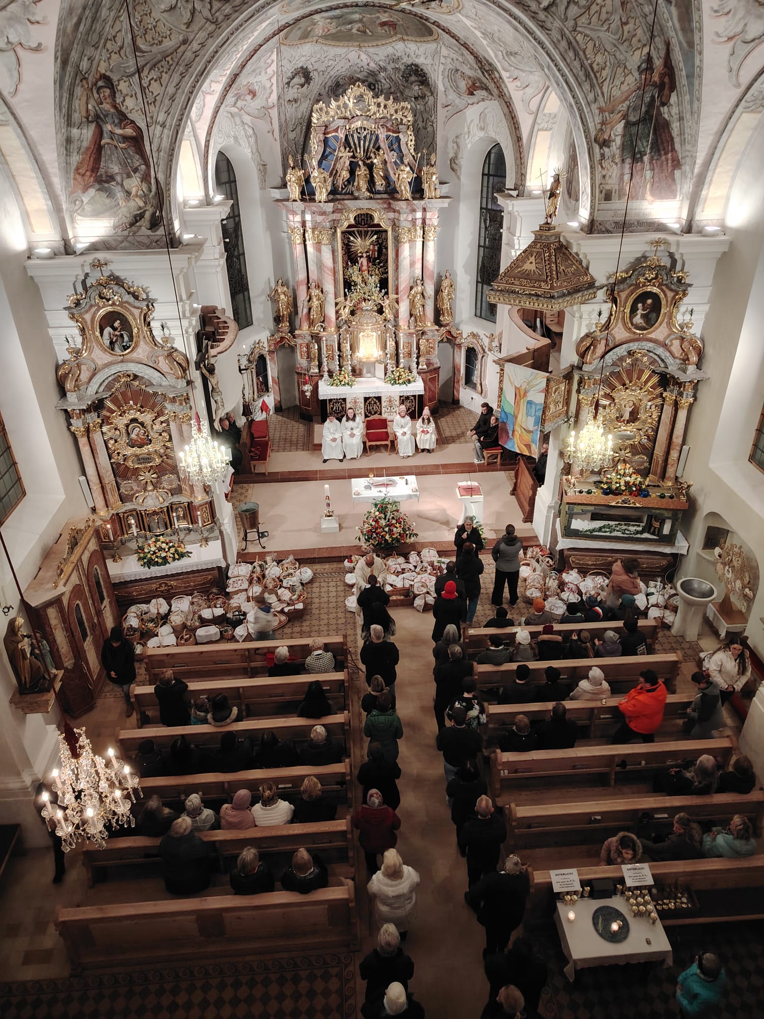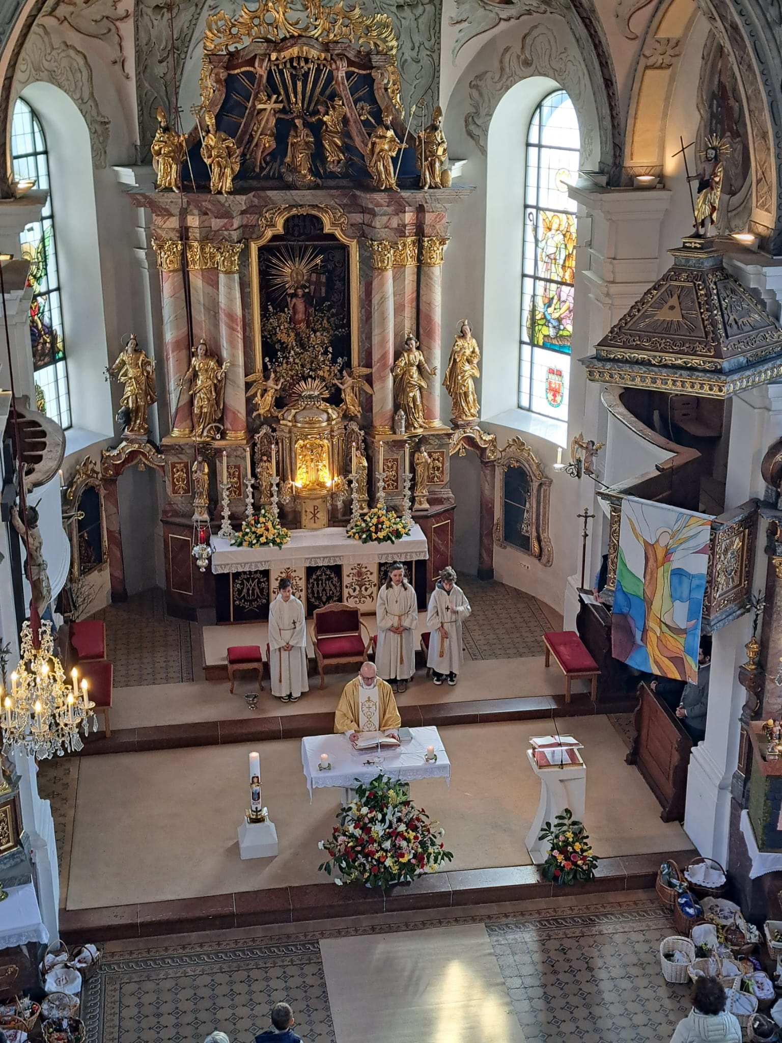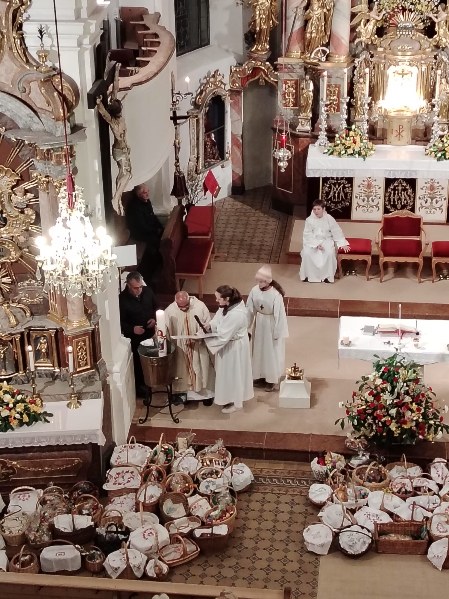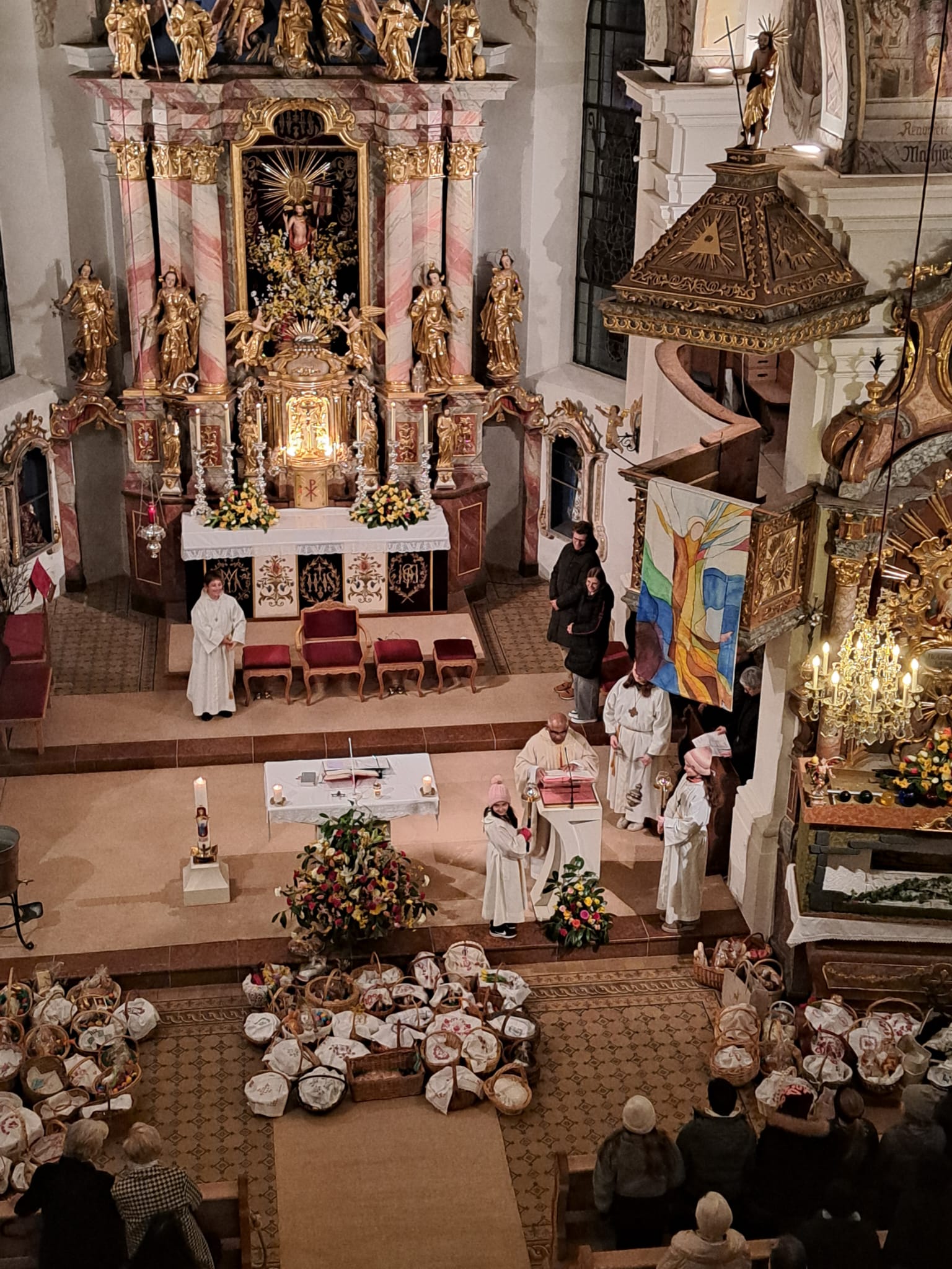 Der Ostersonntag ist das zentrale Fest des Christentums und feiert die Auferstehung Jesu von den Toten. Die Kirche ist festlich geschmückt, und viele bringen wieder Speisekörbe mit. So feiern wir einen feierlichen Gottesdienst mit entsprechender musikalischer Gestaltung.
