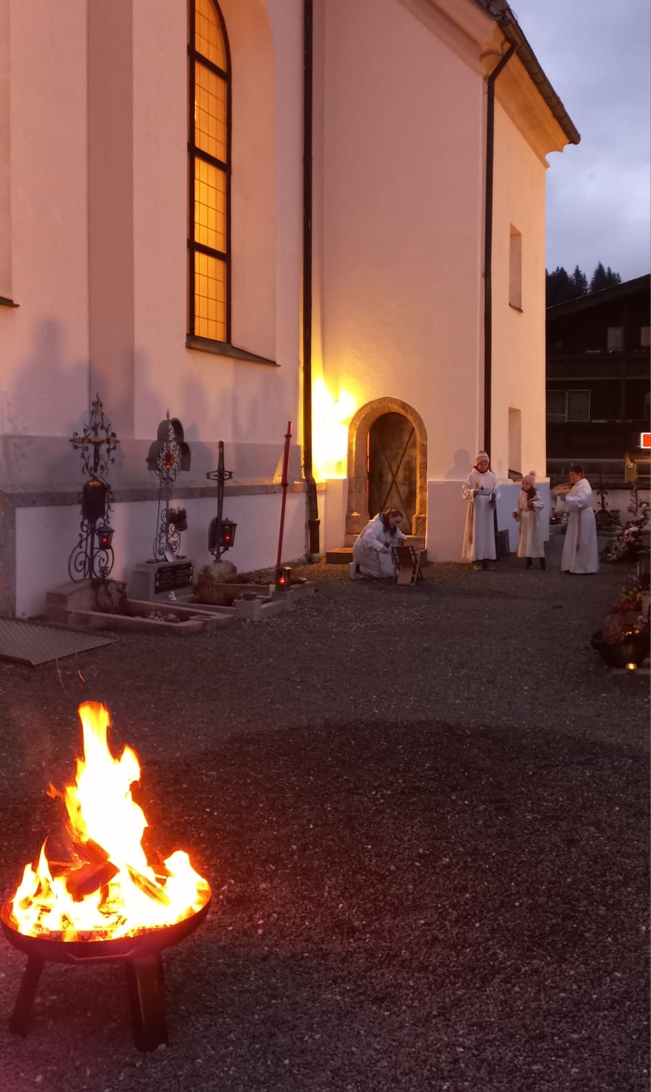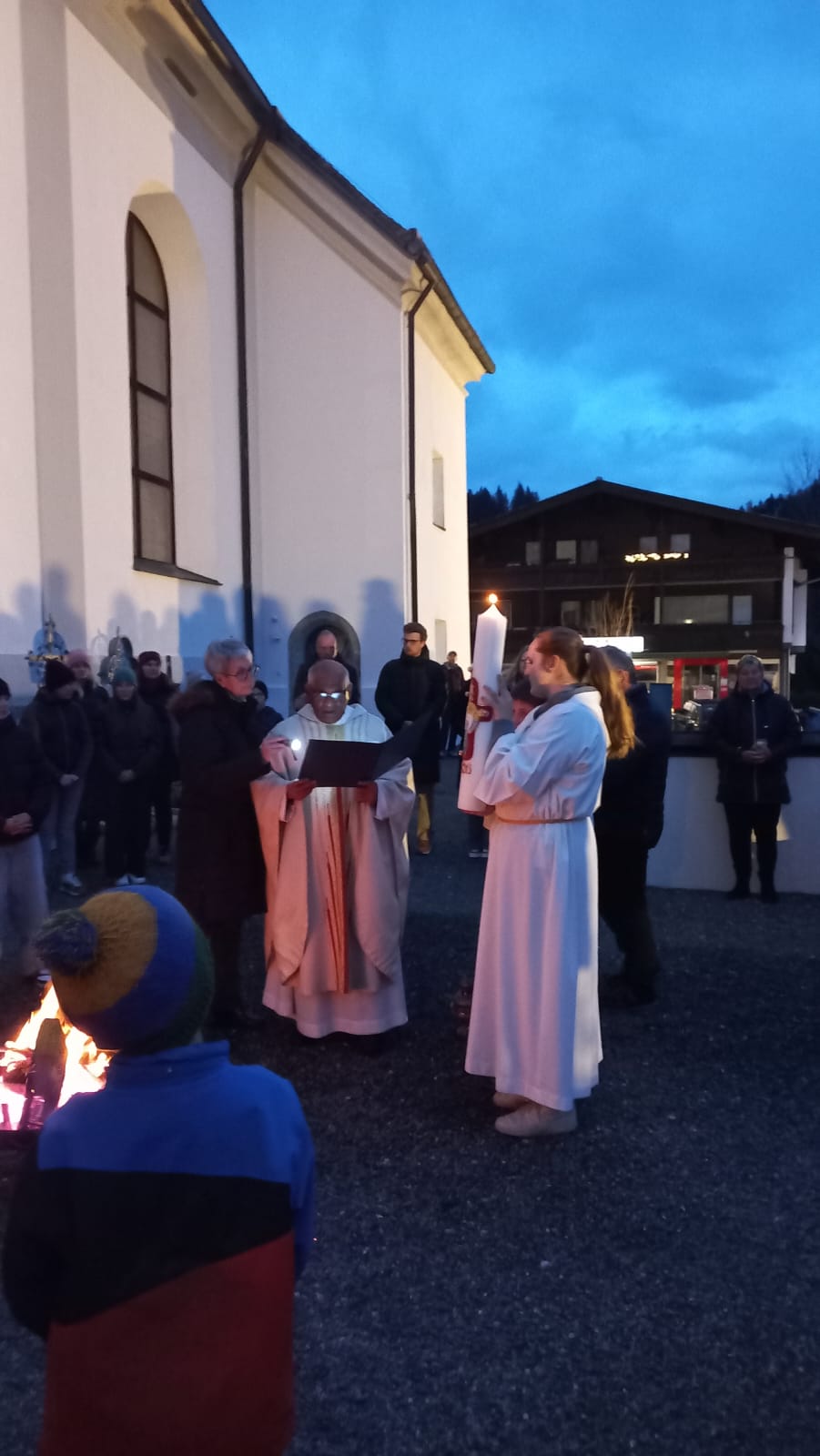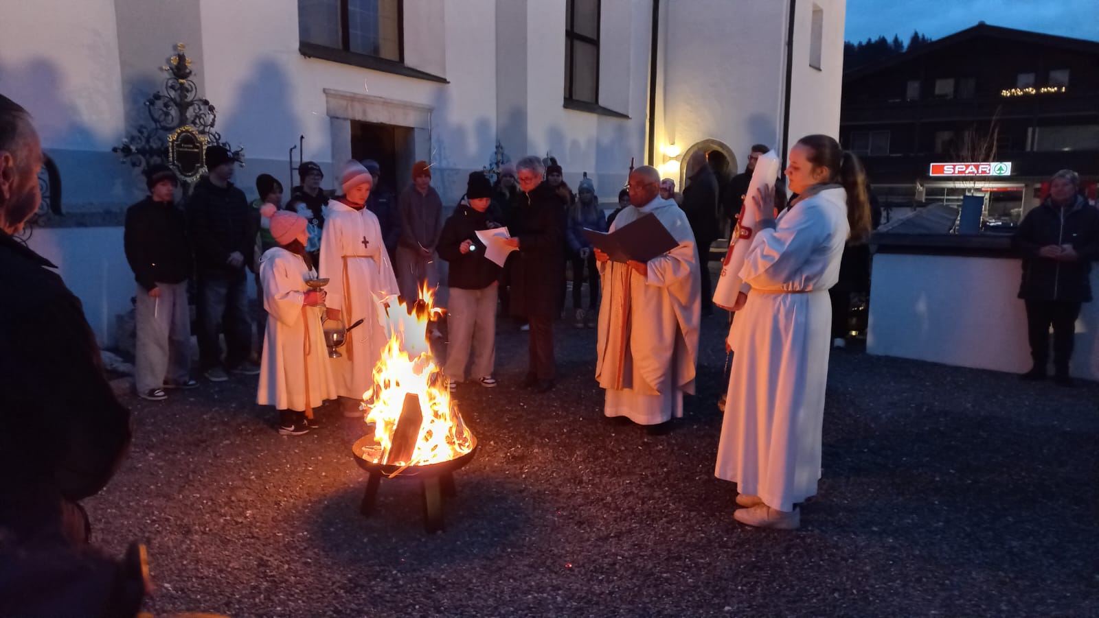 Am Karsamstag bleibt Jesus im Grab. Am Abend beginnt die Osternacht mit einem Osterfeuer. Die Osterkerze wird von Pfarrer Ignaci Siluvai in die dunkle Kirche getragen. Es folgen Lieder und Lesungen, die von den Firmlingen mitgestaltet werden, sowie die Tauferneuerung und die Segnung der Speisenkörbe. Auch die Aktion mit den Sorgenwürmchen fand großen Anklang und unterstützte den Sozialtopf Scheffau.