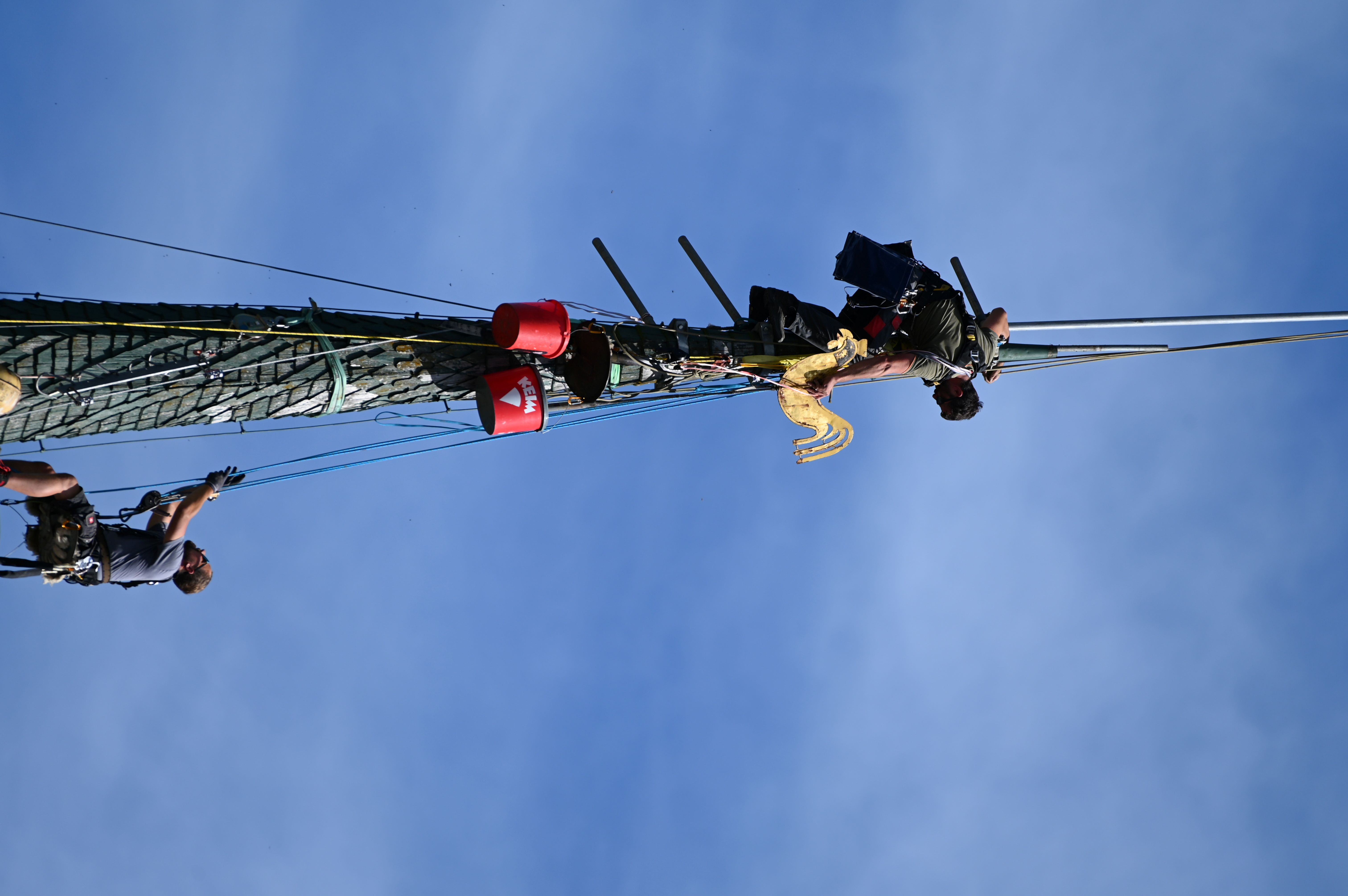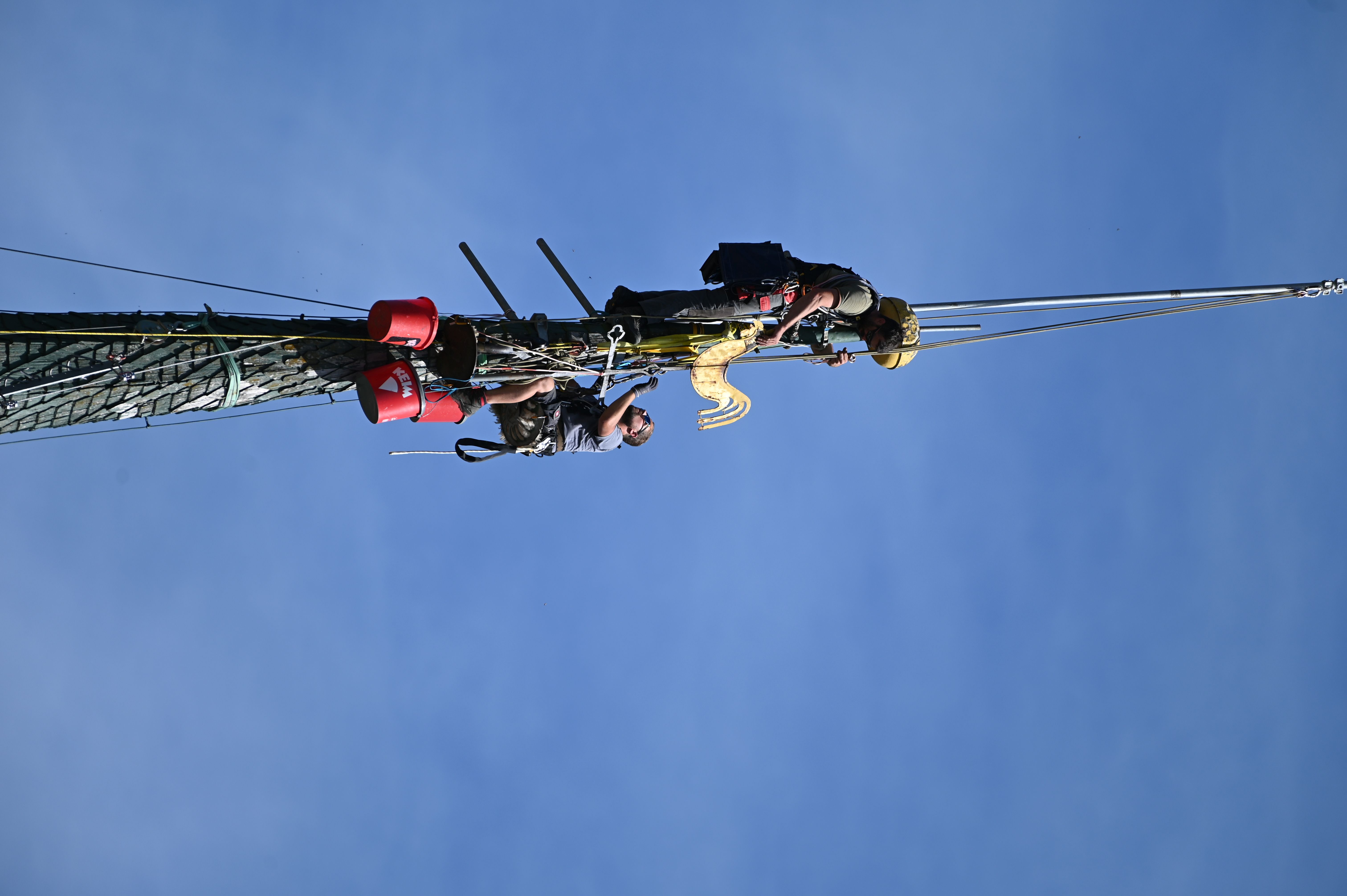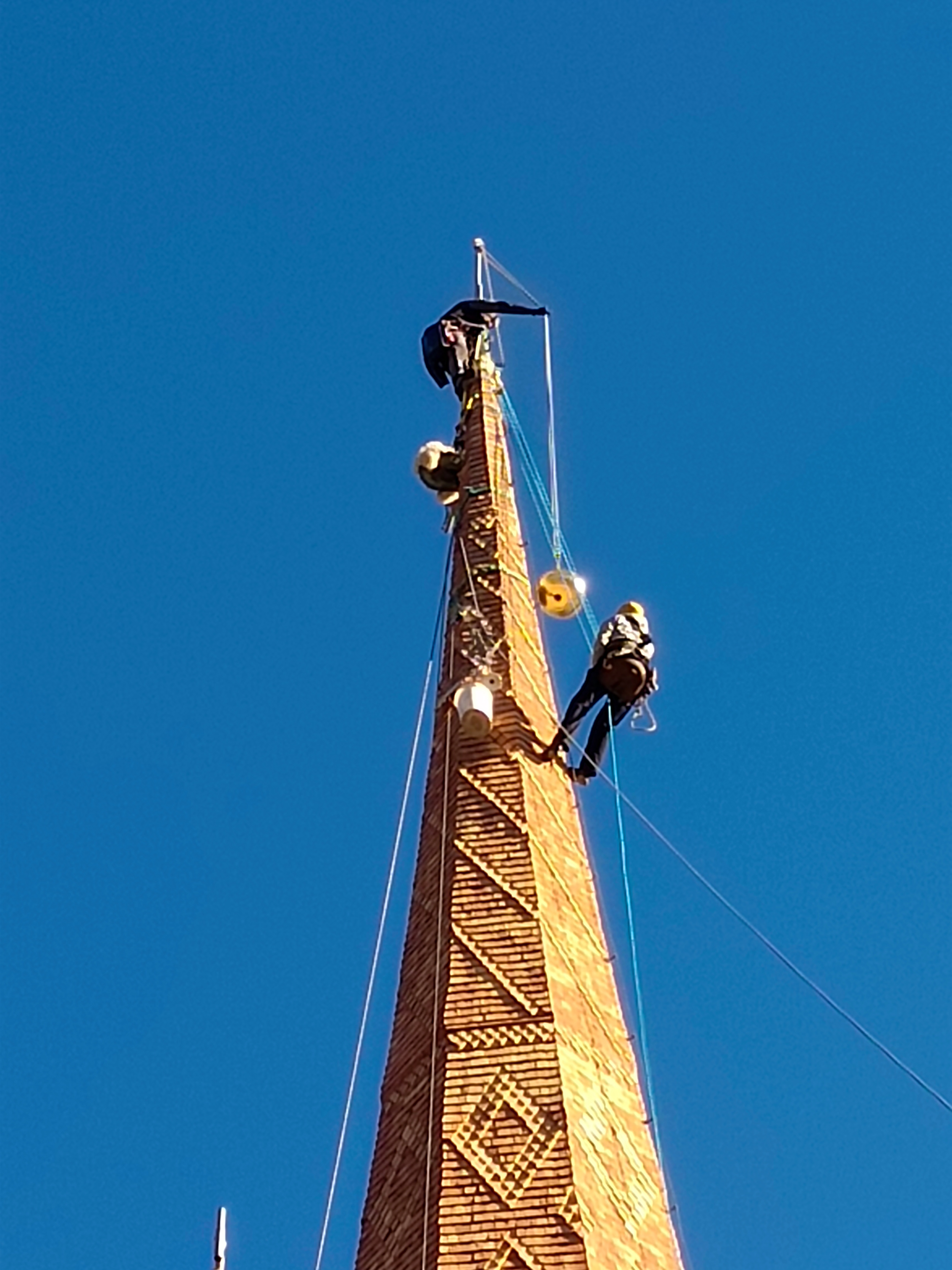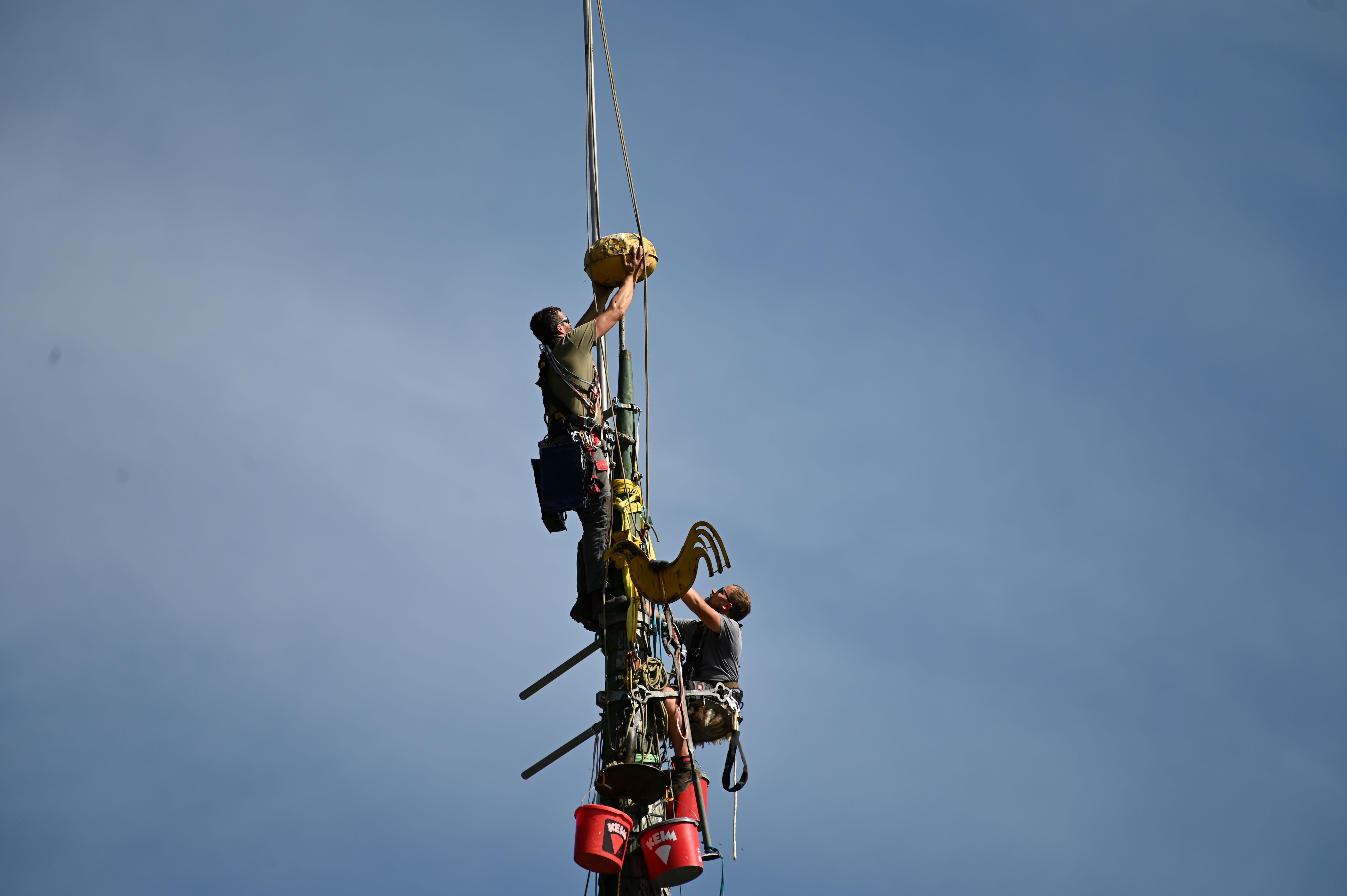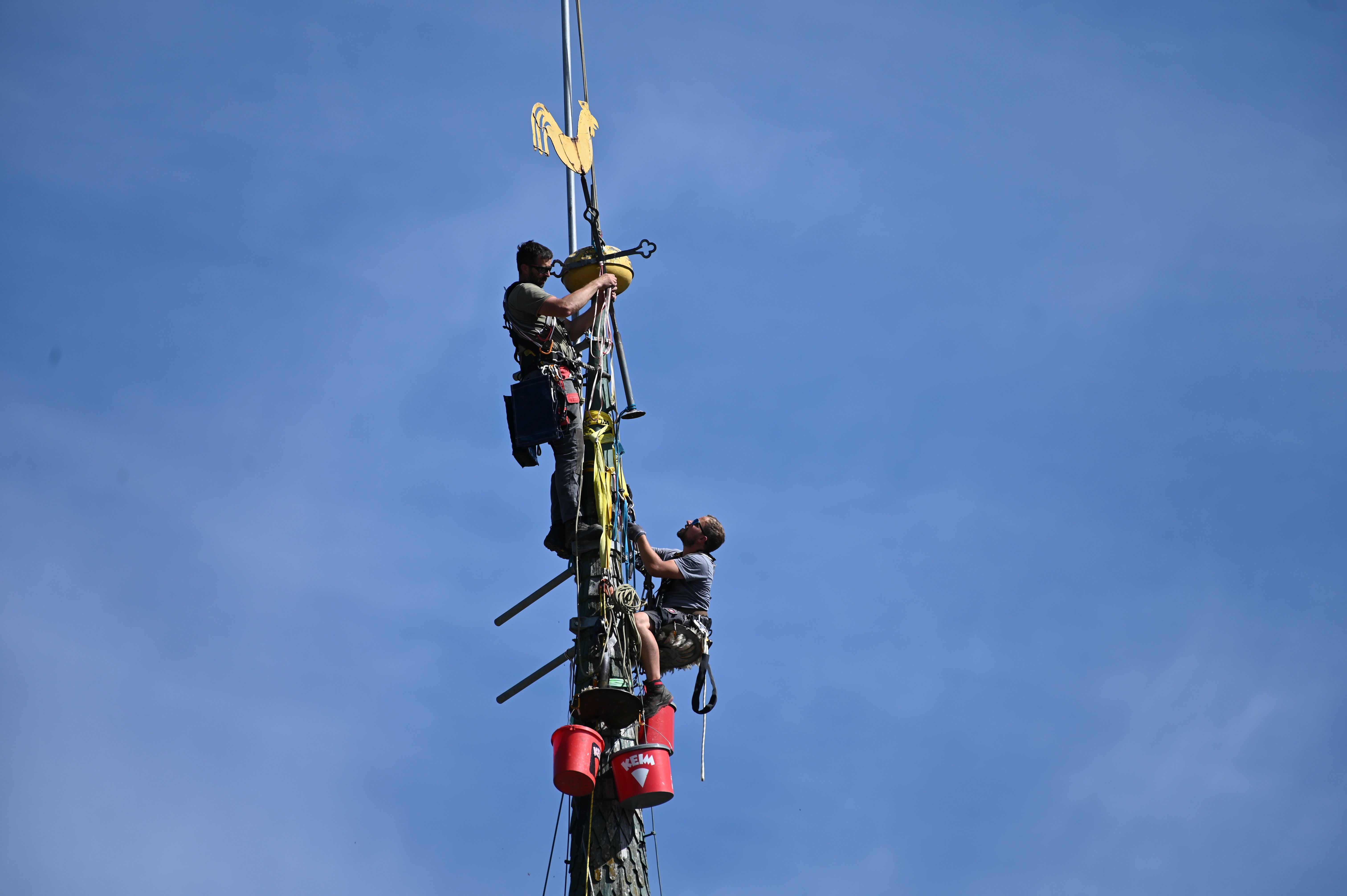 Den Abschluss der Turmarbeiten bildete das Aufsetzen der gesegneten Kreuzkugel mit Kreuz und Wetterhahn. Auch das Kirchendach erhielt neue, langlebige Lärchen-Holzschindeln und ist nun wieder zuverlässig gegen Wind und Wetter geschützt.